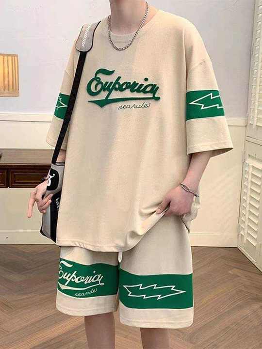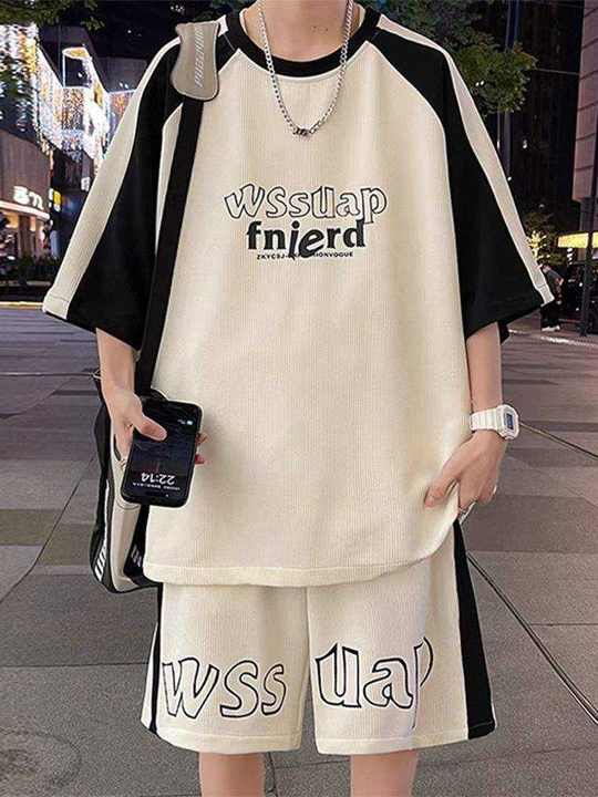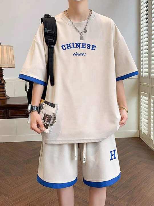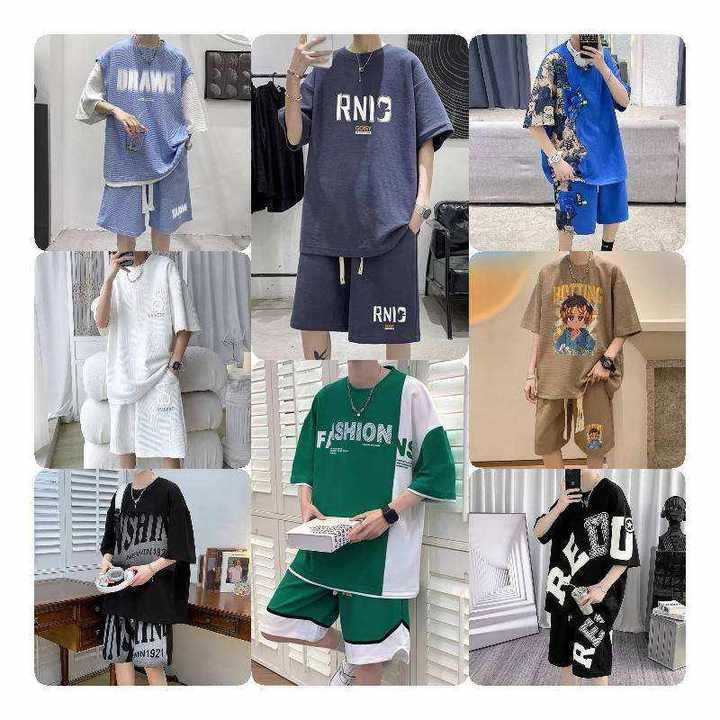 قميص رجالي جديد أنيق صيفي قصير الأكمام شورت للرجال أطقم أزياء من قطعتين بدلات سوداء للرجال