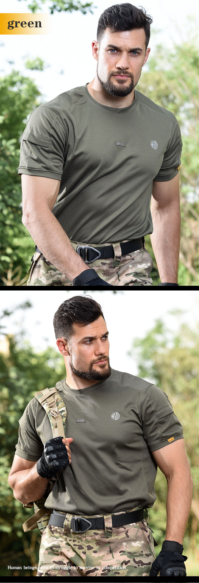 تي شيرت تكتيكي رجالي من HAN WILD بأكمام قصيرة وسريع الجفاف وقابل للتنفس للاستخدام في الهواء الطلق والمشي لمسافات طويلة والتخييم