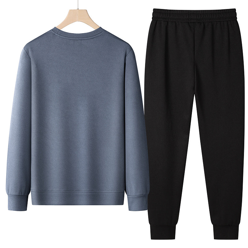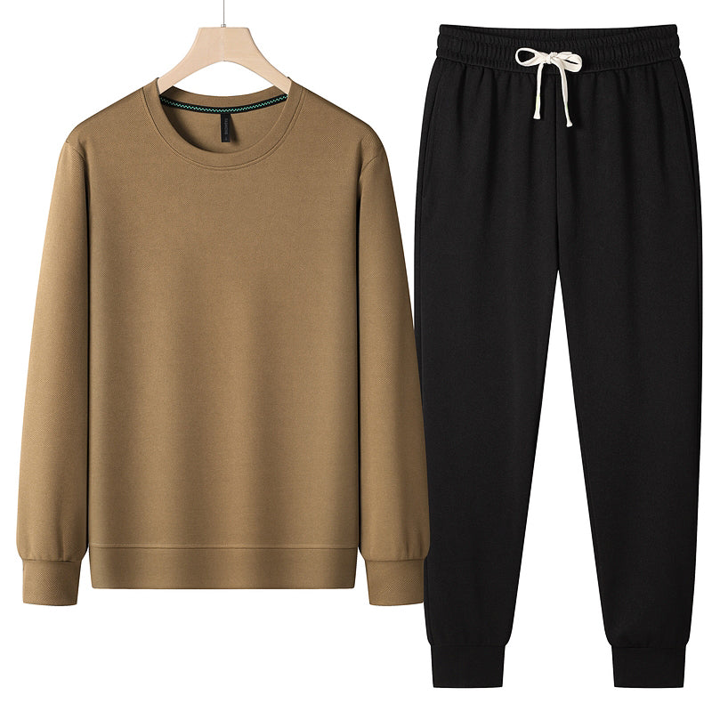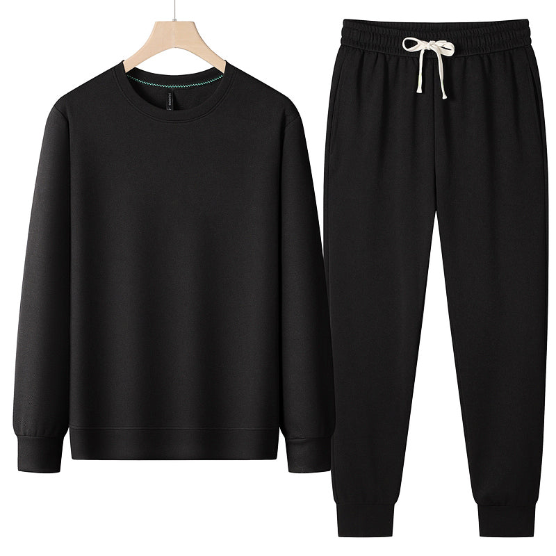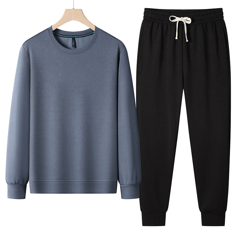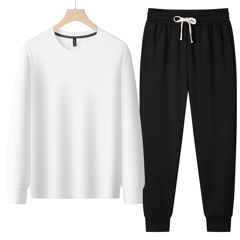 مجموعة ملابس رجالية رياضية كاجوال من القطن الخالص للخريف مكونة من قطعتين، بنطلون برقبة دائرية وبنطلون رياضي