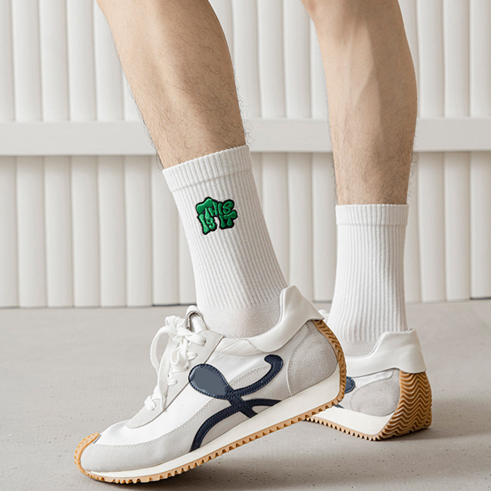 جورب رجالي تيري مخصص بتمشيط وسط الأنبوب بحروف قطنية مطرزة مضادة للبيلينغ موضة الشارع جوارب رياضية للرجال مع شعار