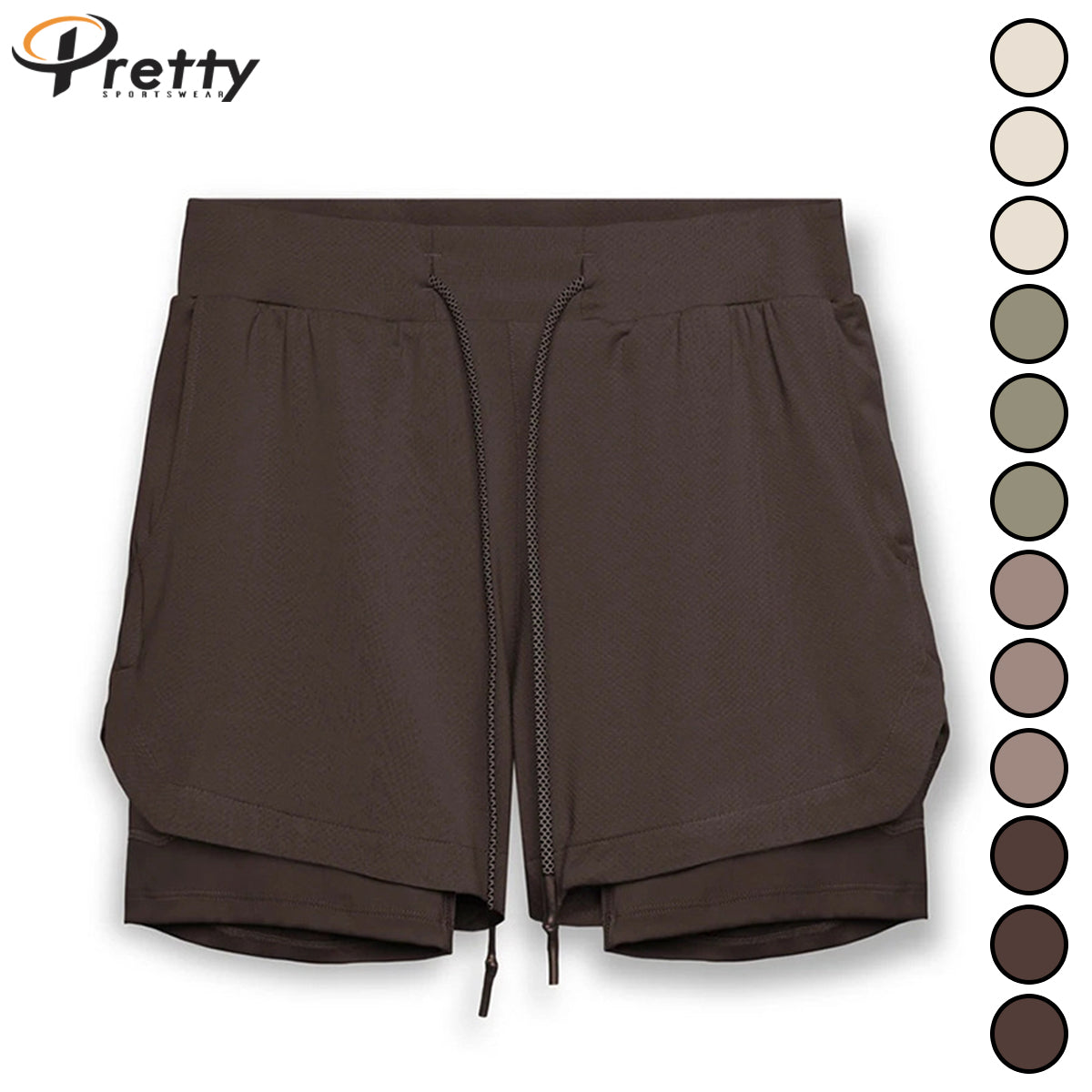 شورت رياضي رجالي 2 في 1 مع ملابس داخلية مدمجة، شورت لياقة بدنية مع ملابس رياضية مدمجة، أطقم رياضية للرجال، ملابس رياضية