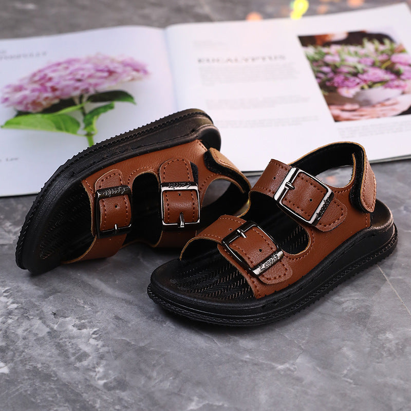 صنادل رياضية صيفية للأولاد من عمر 1-15 سنة، أحذية شاطئ أنيقة من الجلد مقاومة للانزلاق ومتينة للاستخدام الخارجي