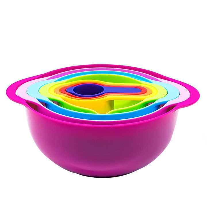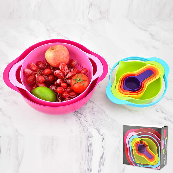 Set of 8 Multifunctional Salad Bowls for Mixing Food Prep Bowl with Strainer and Measuring Cup for Kitchen Accessories