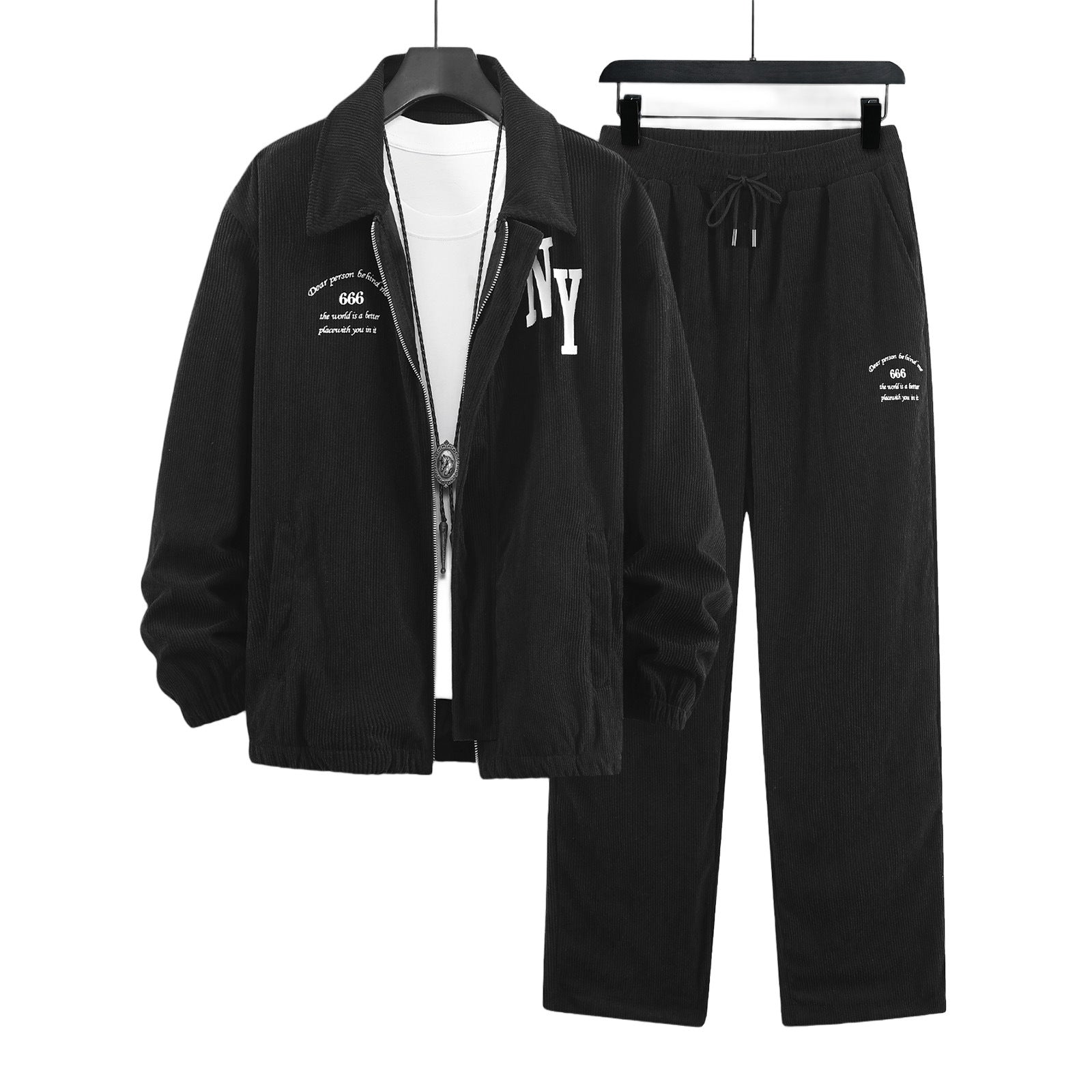 طقم رجالي عصري من قماش مخملي متعدد الحدود بأكمام طويلة ومعطف رفيع مناسب للربيع والخريف