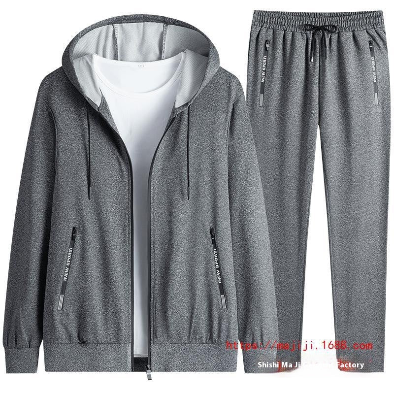 طقم رجالي جديد للخريف، طقم رياضي كاجوال مكون من قطعتين، كارديجان، جاكيت، بنطال طويل مستقيم، سويت شيرت بغطاء للرأس، قصة فضفاضة، منسوج
