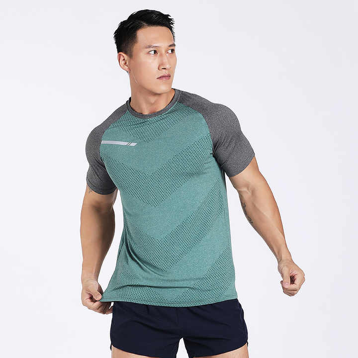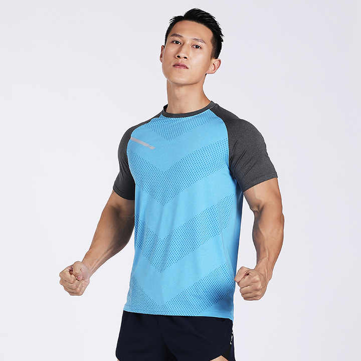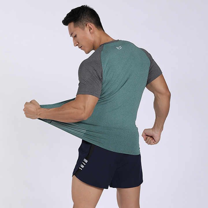 قميص رجالي صيفي سريع الجفاف يسمح بمرور الهواء بأكمام قصيرة لممارسة الرياضة والجري وقمصان كاجوال من الحرير الجليدي المرن