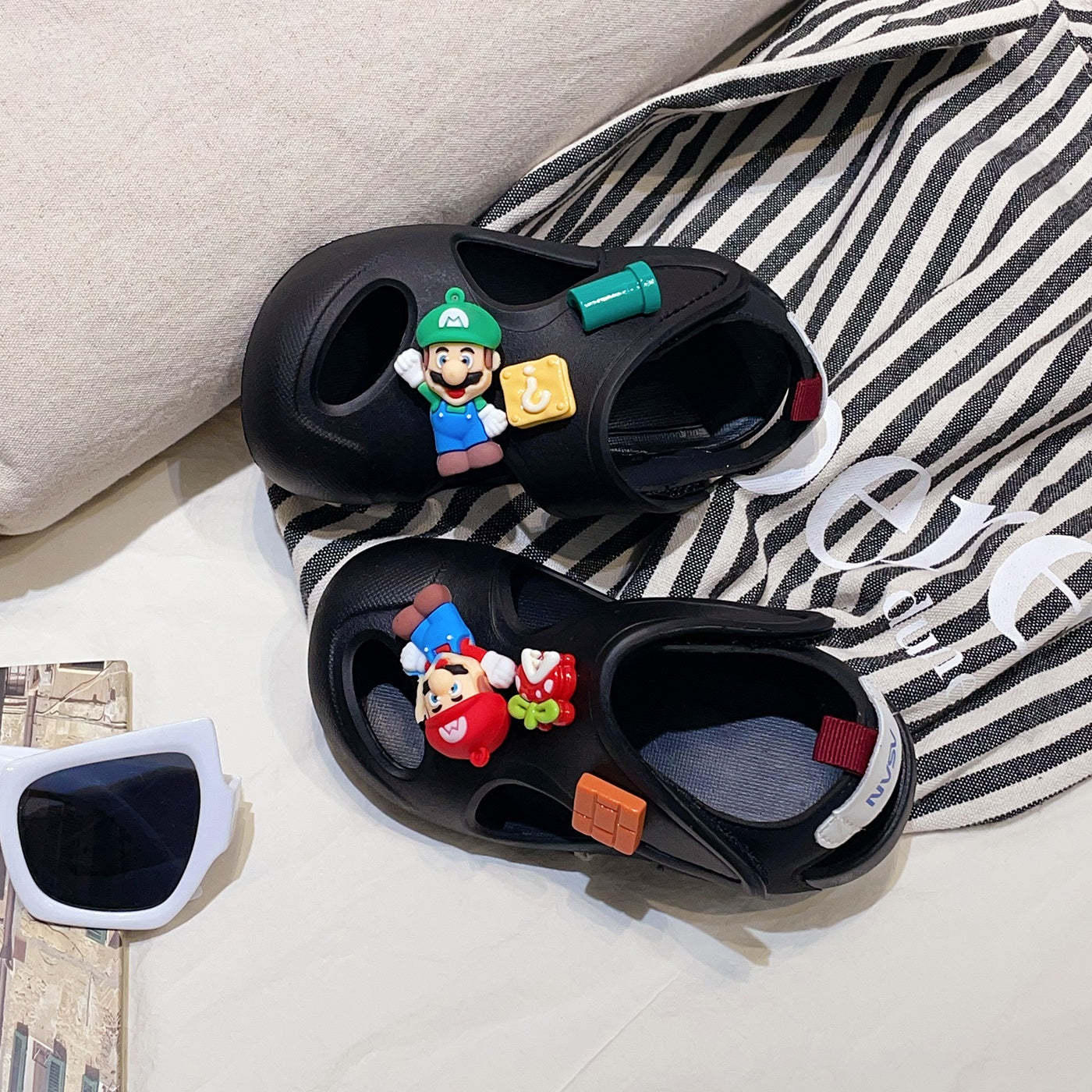 أحذية ماريو الكلاسيكية الجديدة للأطفال صيف 2025، أحذية شاطئ ناعمة من مادة EVA، صنادل كرتونية للأولاد والبنات، شباشب كروكس للجنسين