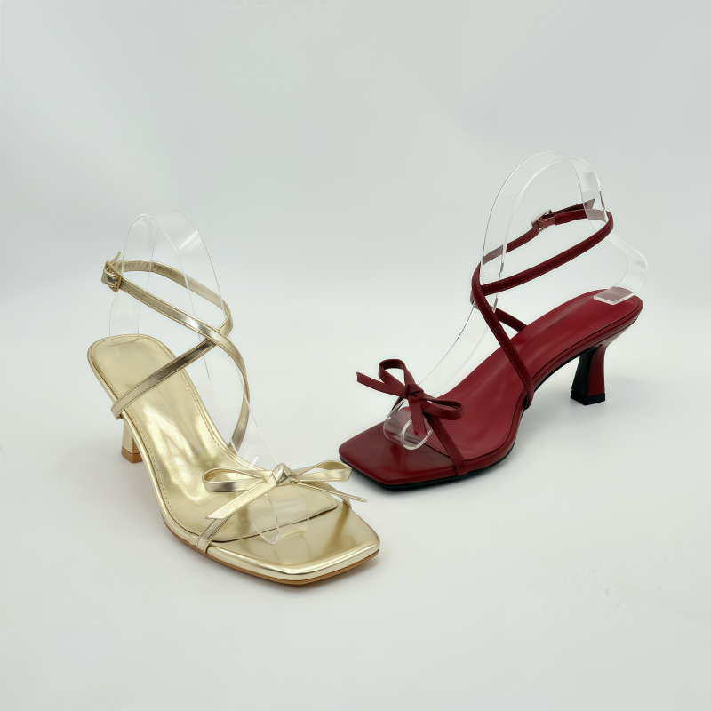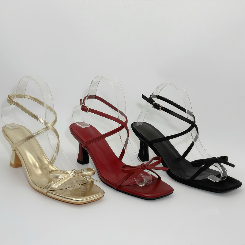 صندل نسائي صيفي جديد بعقدة متقاطعة وحزام واحد وحزام للكاحل ورأس مربع مفتوح من الأمام وكعب عالٍ رفيع