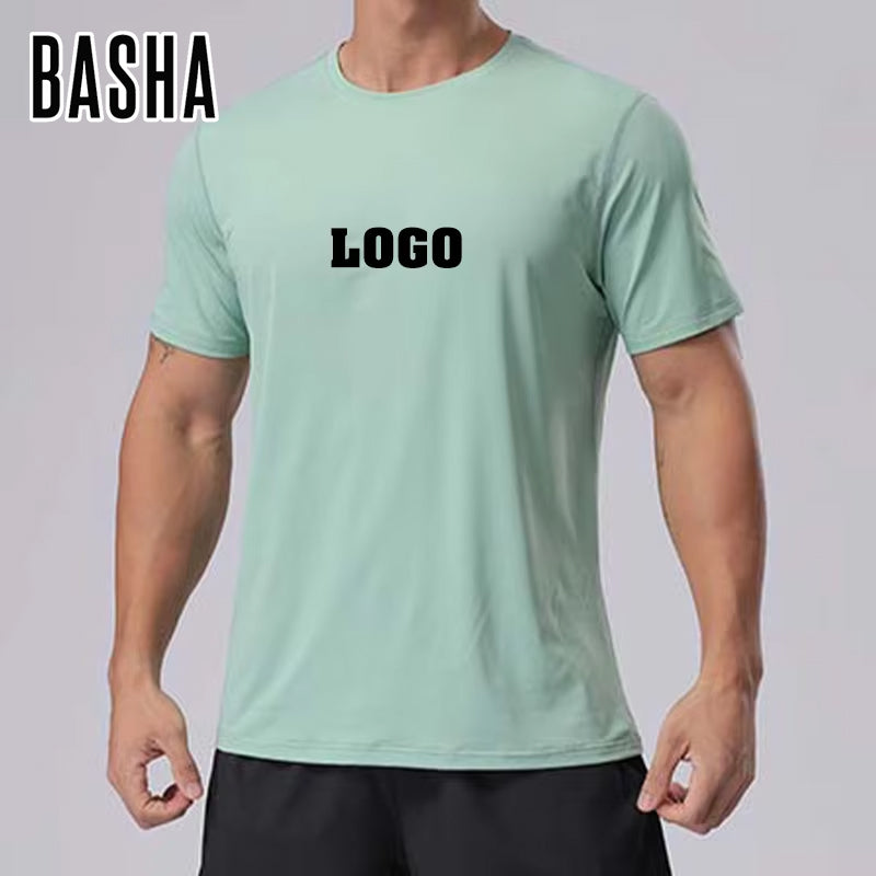 متوفر في المخزون جودة جيدة من الحرير الجليدي سريع الجفاف بأكمام قصيرة قميص رياضي رجالي للتمرين الرياضي ملابس رياضية