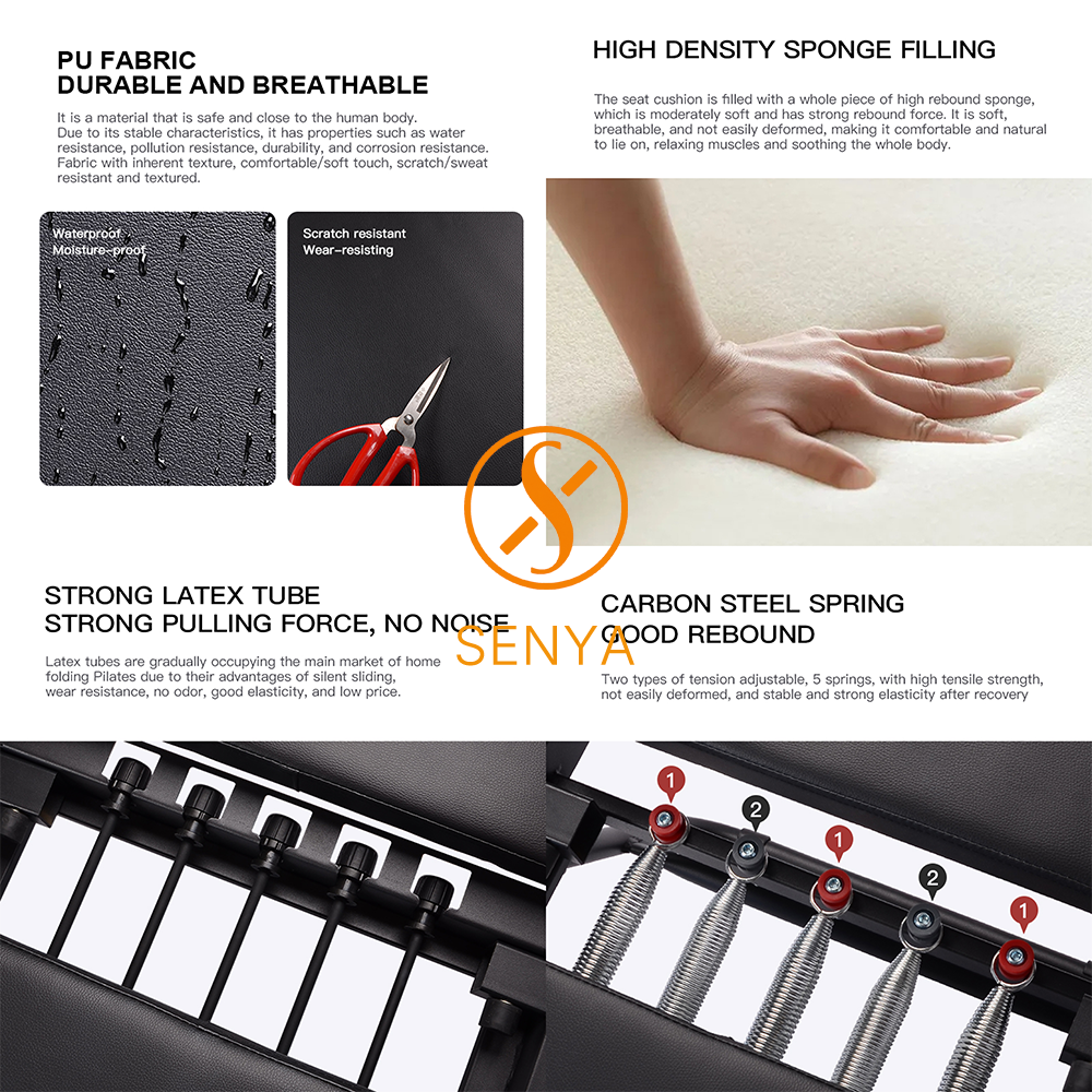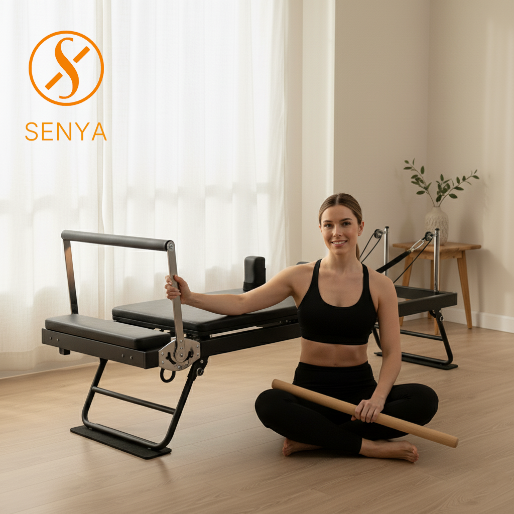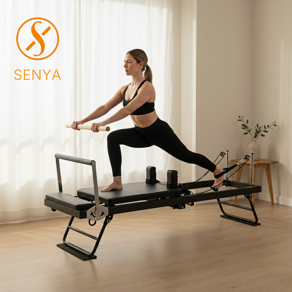 قابل للطي دائم المحمولة بيلاتس آلة المصلح المنزل جميع المستويات المدرب تجريب الينابيع المعدات الألومنيوم الجسم مربع صحي