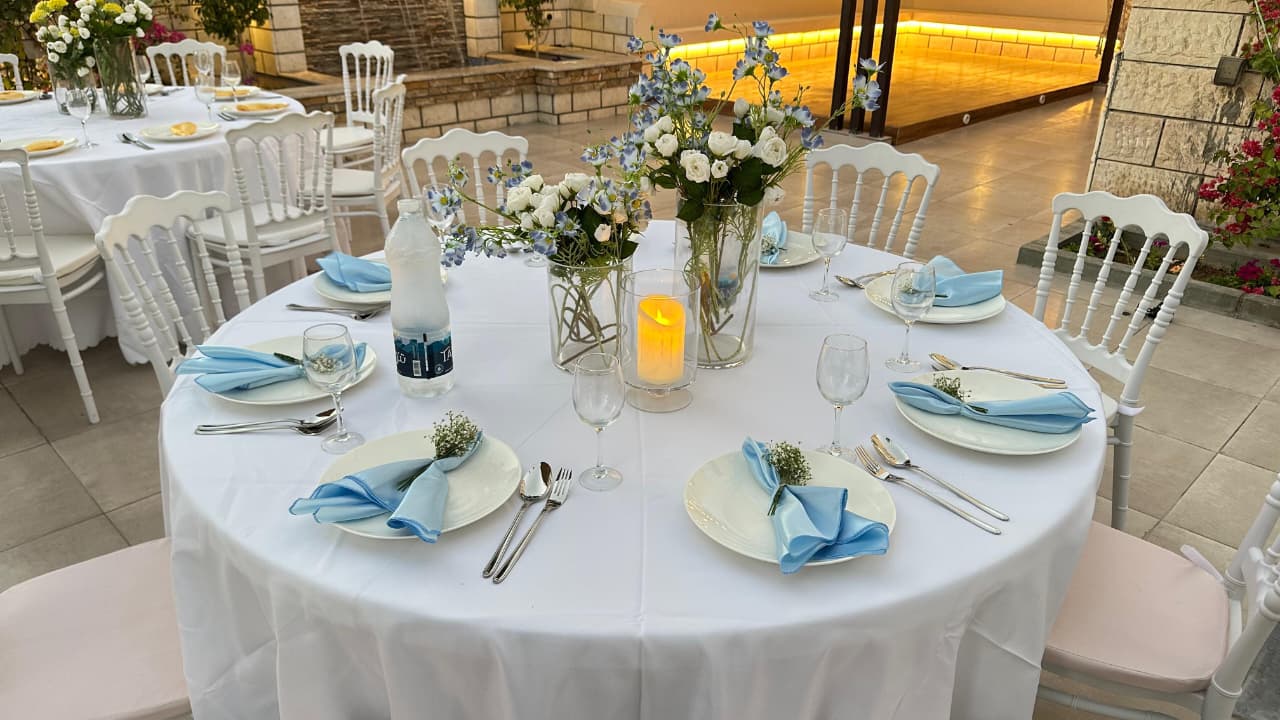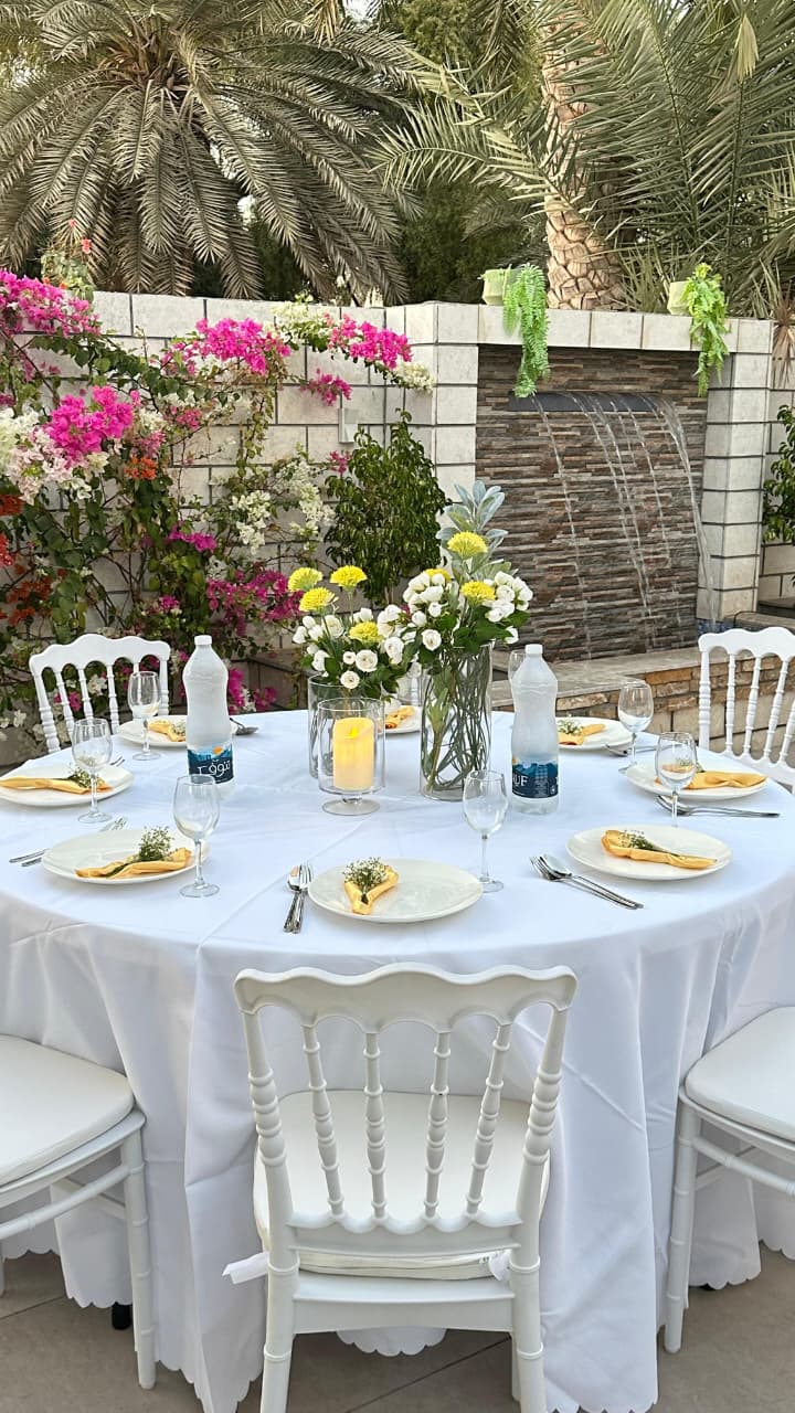 طاول مع مفرش+10 كراسي+مناديل وصحون واكواب وملاعق السعر 15 ريال