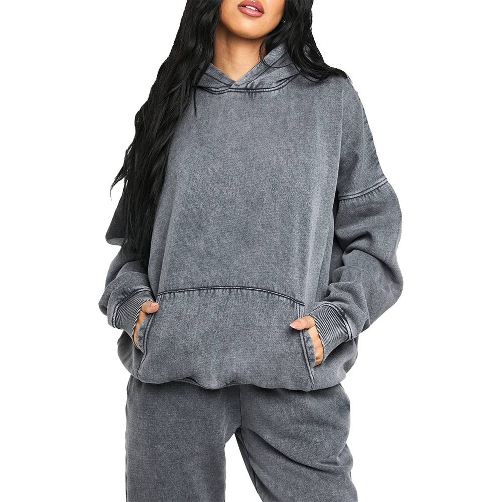 هوديز نسائية عالية الجودة بالجملة بشعار مخصص صديقة للبيئة من الصوف المغسول بالأحماض للارتداء في الشارع للخريف والشتاء