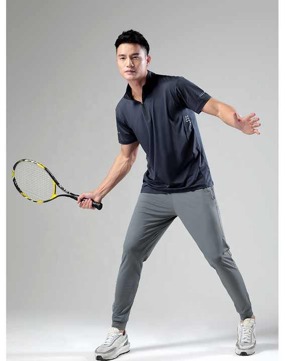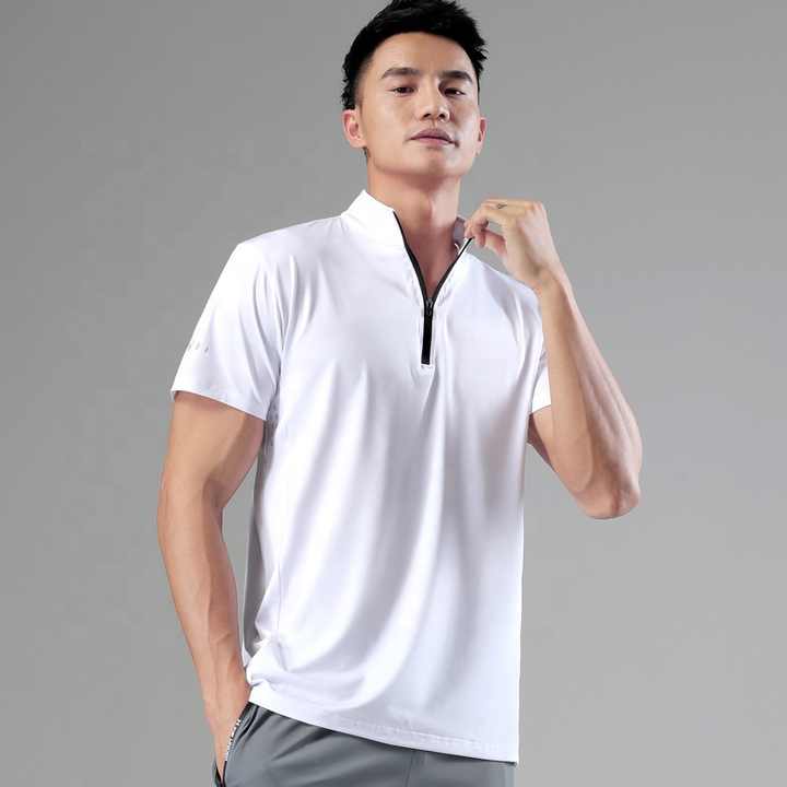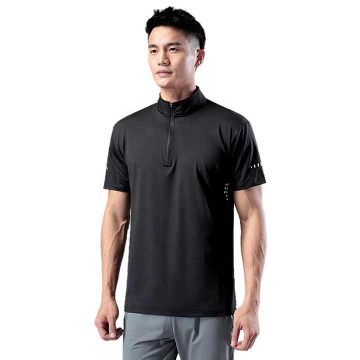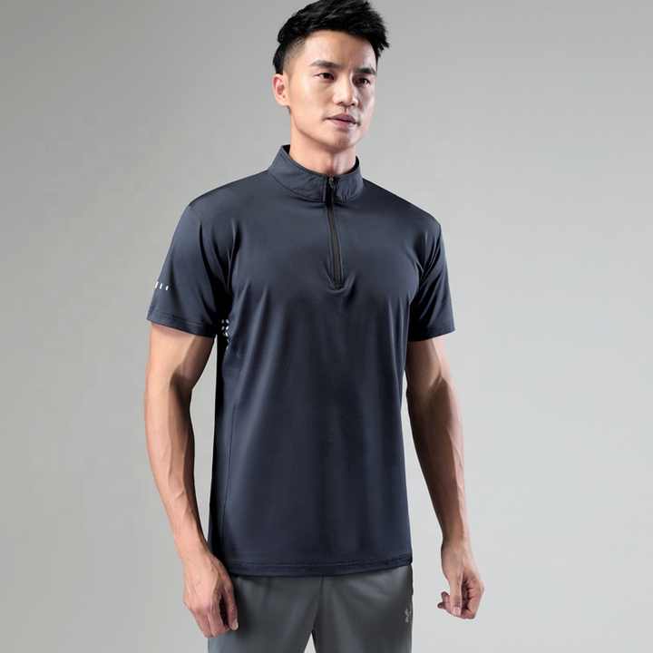 قميص جري سريع الجفاف بأكمام قصيرة وسحاب أمامي نصف مخصص وقميص تنس وقميص جولف وقميص رياضي