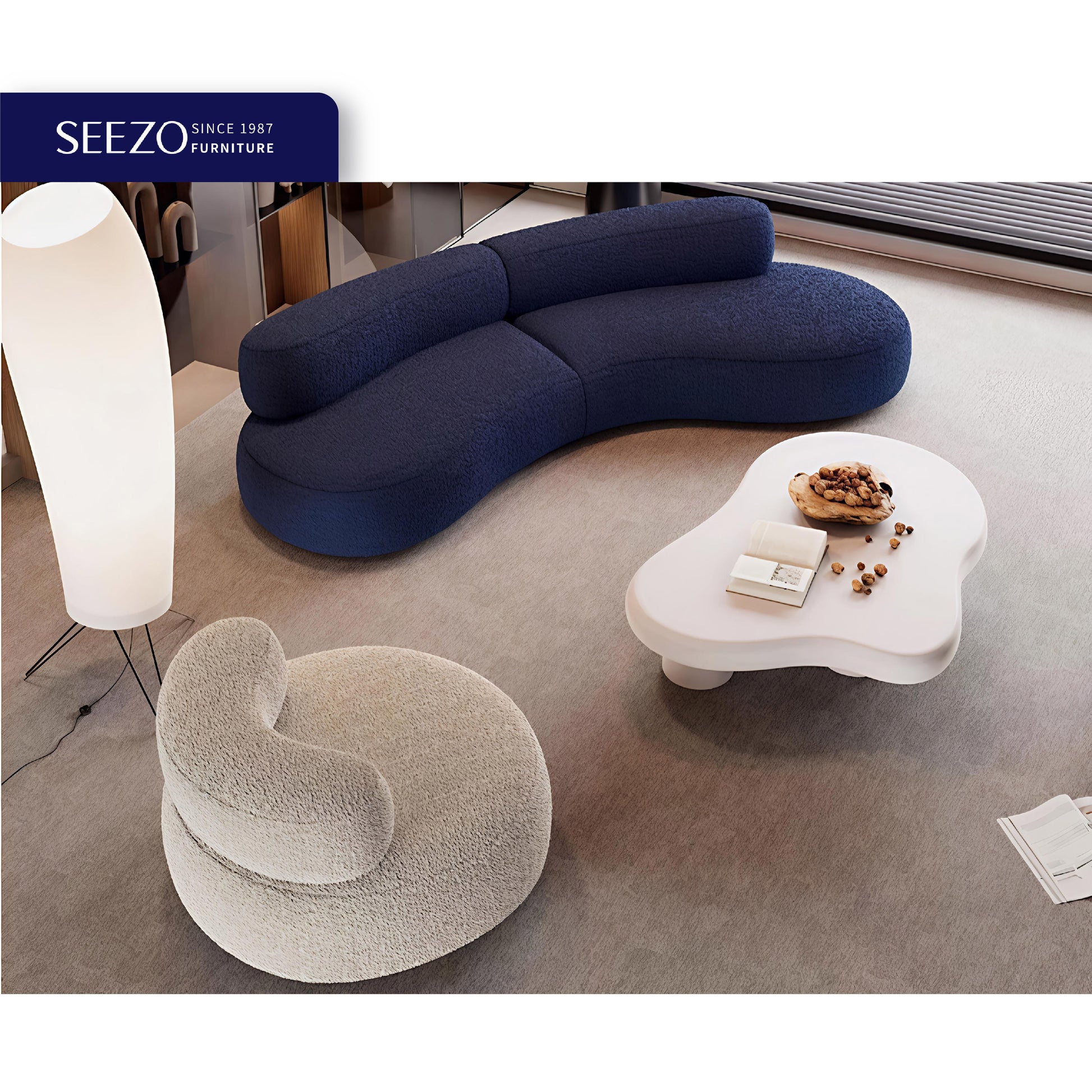 أريكة غرفة المعيشة المقوسة ذات مقعدين ، أريكة جديدة مضغوطة من القماش في صندوق للفنادق
