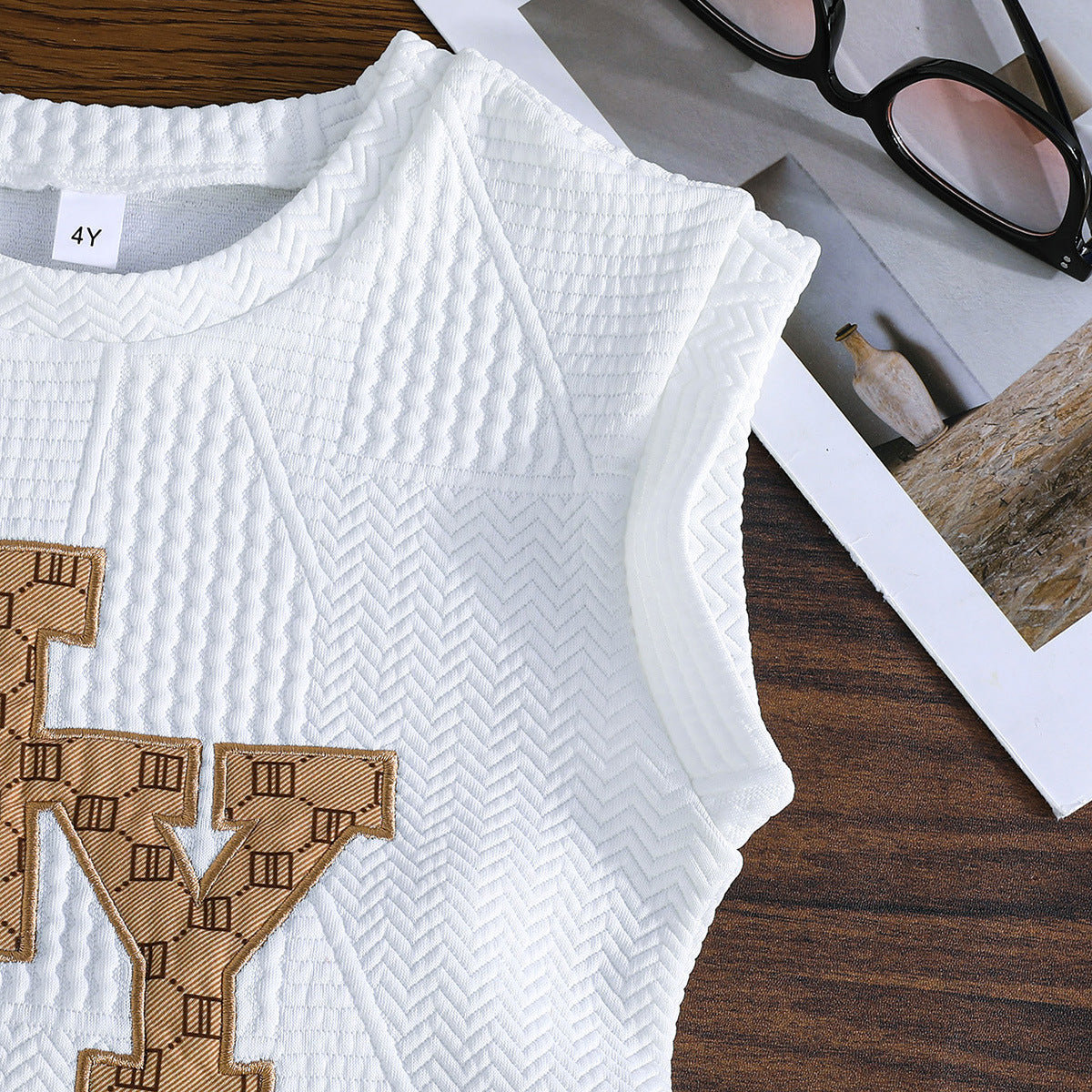 أزياء صيفية عصرية للأولاد ملابس مبهجة بطباعة حروف تيشيرت قطني هندسي شورت كاجوال بتصميم عصري يتميز برسوم كرتونية