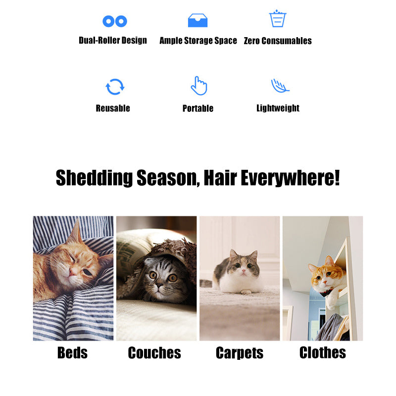 مريحة ومنخفضة الضوضاء لإزالة شعر الحيوانات الأليفة تصميم ثنائي الأسطوانة مدمجة وخفيفة الوزن بكرات نايلون للأسر متعددة الحيوانات الأليفة