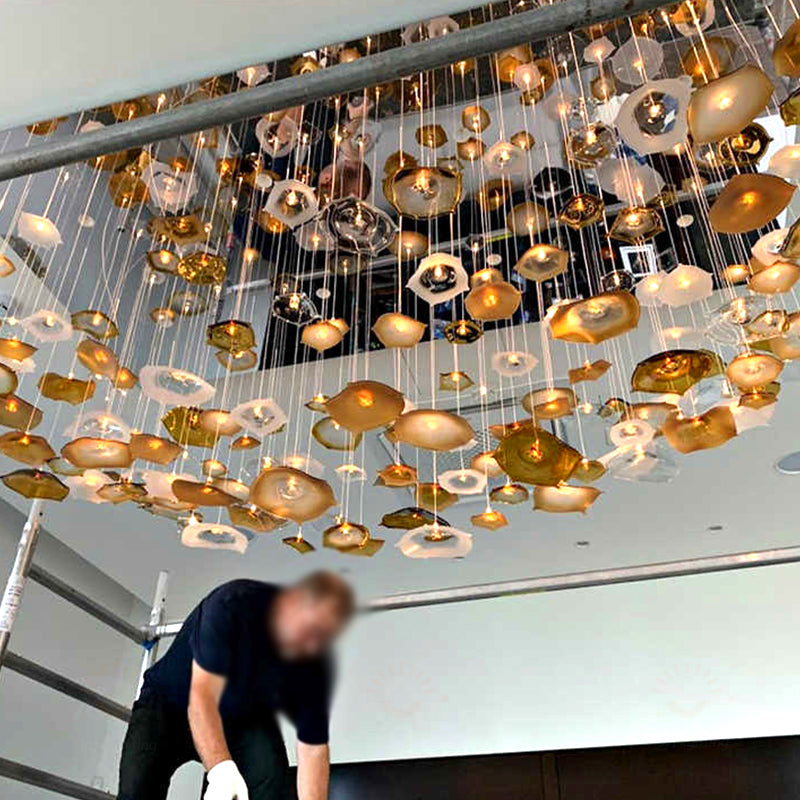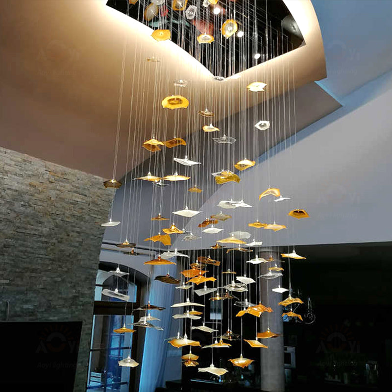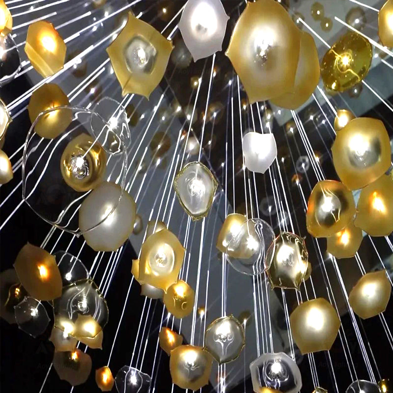 ثريا فنية حديثة على شكل ورقة اللوتس، إضاءة تزيينية لقسم المبيعات، إضاءة فندقية ونوادي الترفيه الصحية، إضاءة مشاريع غير قياسية