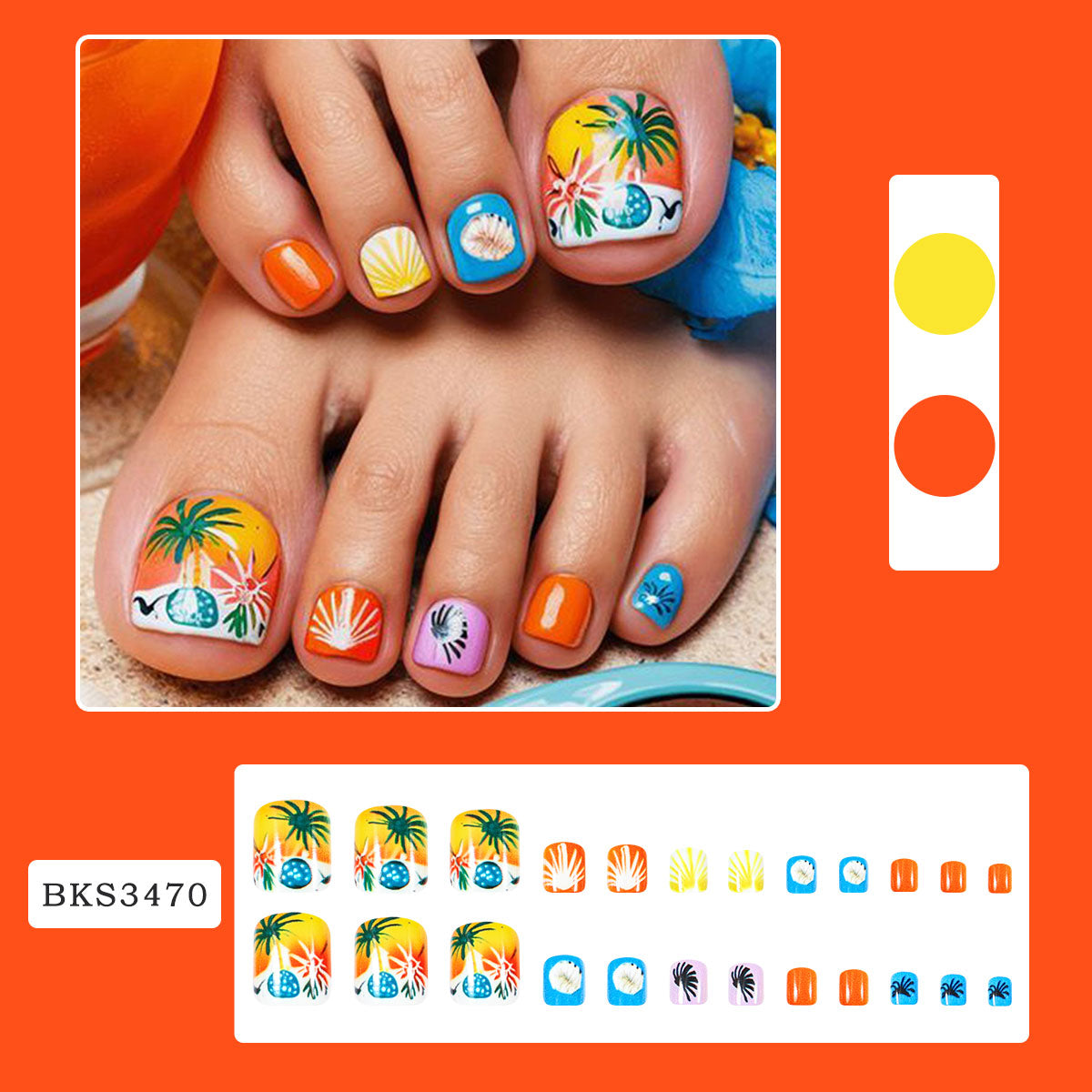 أظافر 24 جودة عالية للشاطئ للصيف غطاء كامل اصطناعي بالضغط على أظافر أصابع القدم