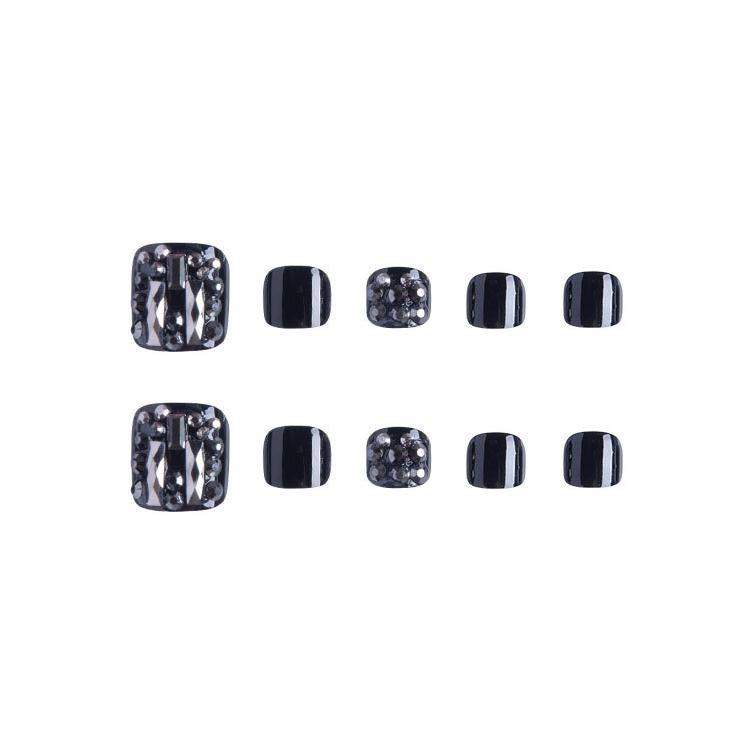 مجموعة تزيين الأظافر أطراف قصيرة فرنسية أطراف سوداء اللون الفتيات الفاخرة في الصين تصميم إصبع القدم الاكريليك اصبع القدم الأظافر