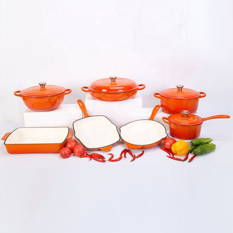 أواني طهي من المينا والحديد الزهر بحجم قابل للتخصيص غير لاصقة من المينا ، طقم أواني طهي خزفية خارجية