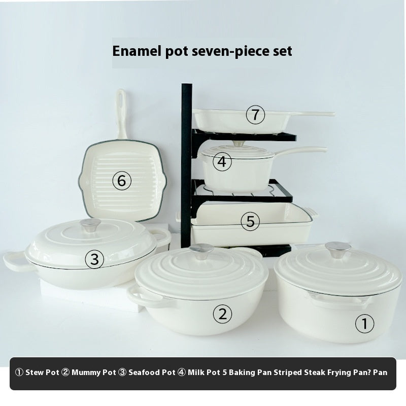 مينا حديد زهر كلاسيكي مستدام مكون من سبع قطع حصريًا قلي معدني للحساء وعاء موميا للمأكولات البحرية لاستخدامات متعددة