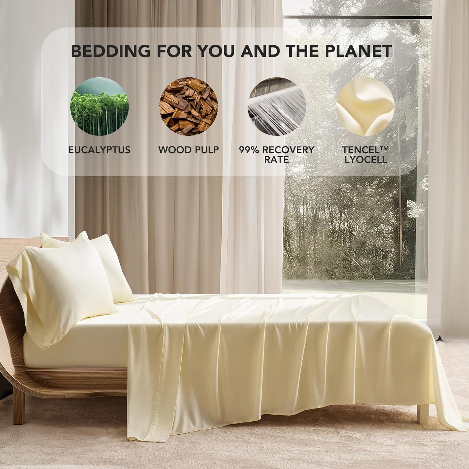 طقم مفارش سرير حرير ليوسيل نباتي عصري ملاءات سرير مسطحة مقاسات الملك والملك الفائق للصيف