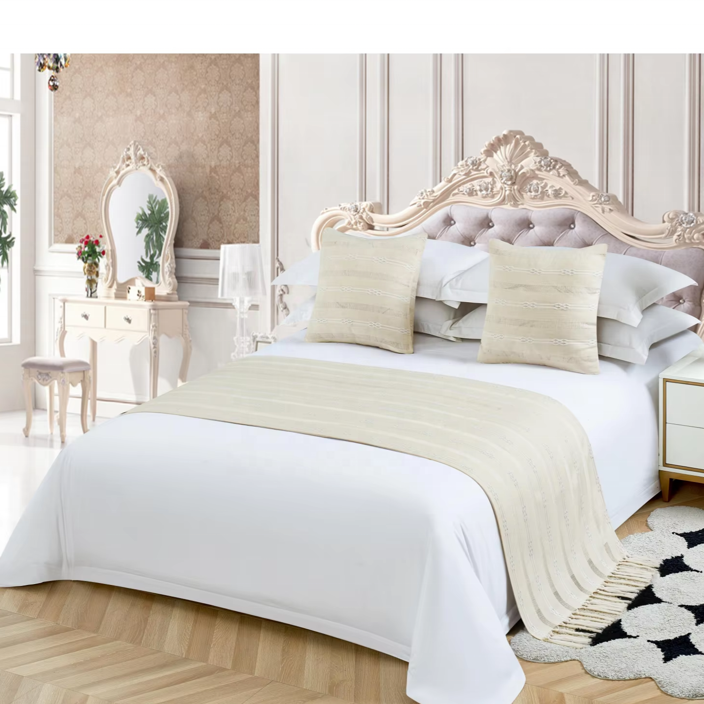متاح لجميع المواسم طقم مفارش سرير فندقي من 7 قطع طقم مفارش سرير ناعمة ودافئة وجيدة التهوية للإقامة المنزلية
