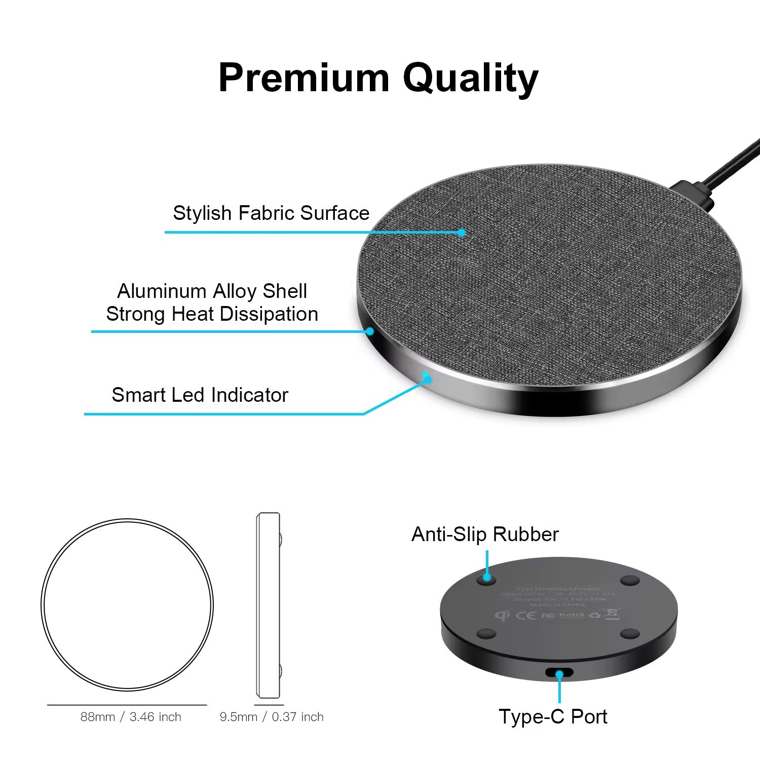 15W Universal Wireless Charger with LED Type-C Fast Charging for Apple Samsung Phone