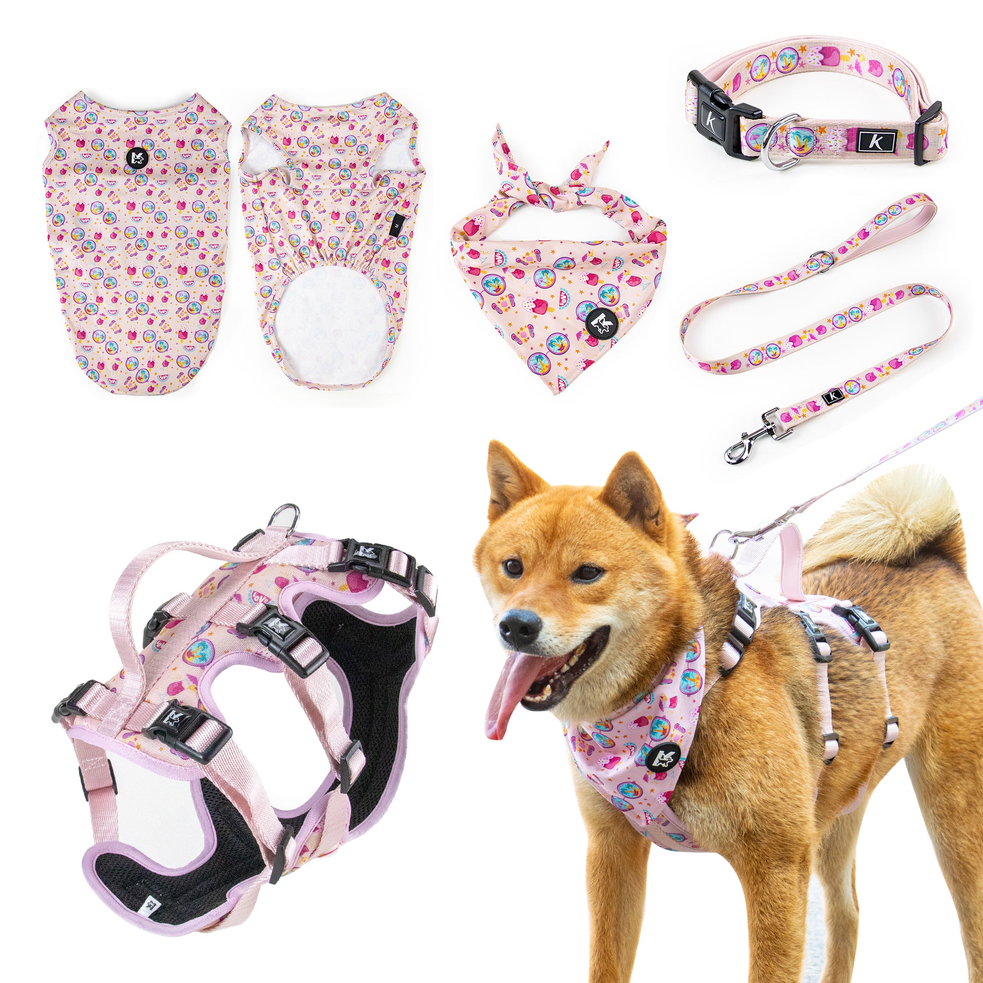 إكسسوارات حيوانات أليفة ملونة صيفية-جودة ممتازة-مقود قابل للسحب طوق كلب أليف طقم مقود ومقود
