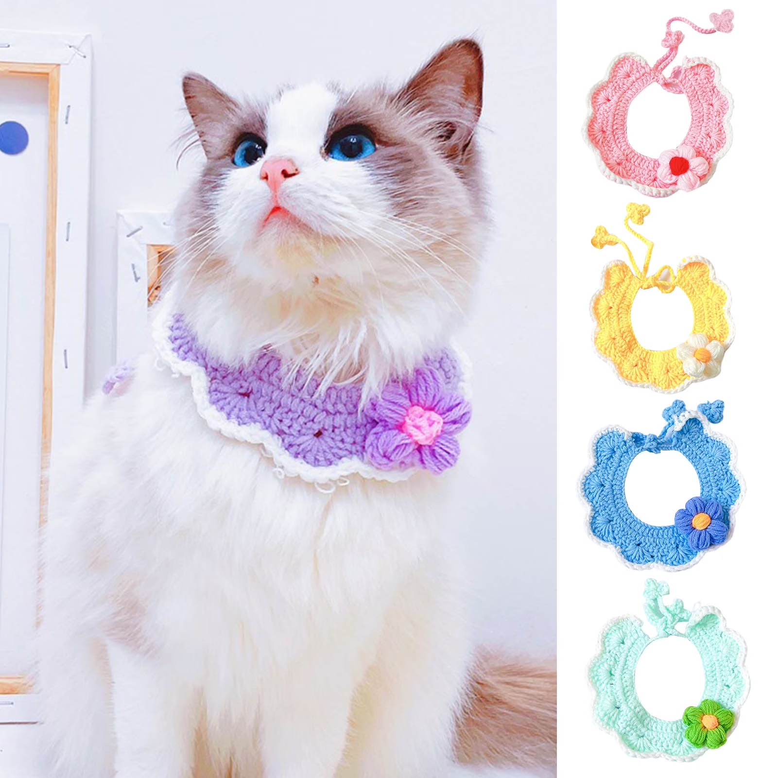 طوق القط شكل الزهور الملحقات الزخرفية اليدوية محبوك الحيوانات الأليفة القطط الكلاب طوق مريلة لقضاء عطلة