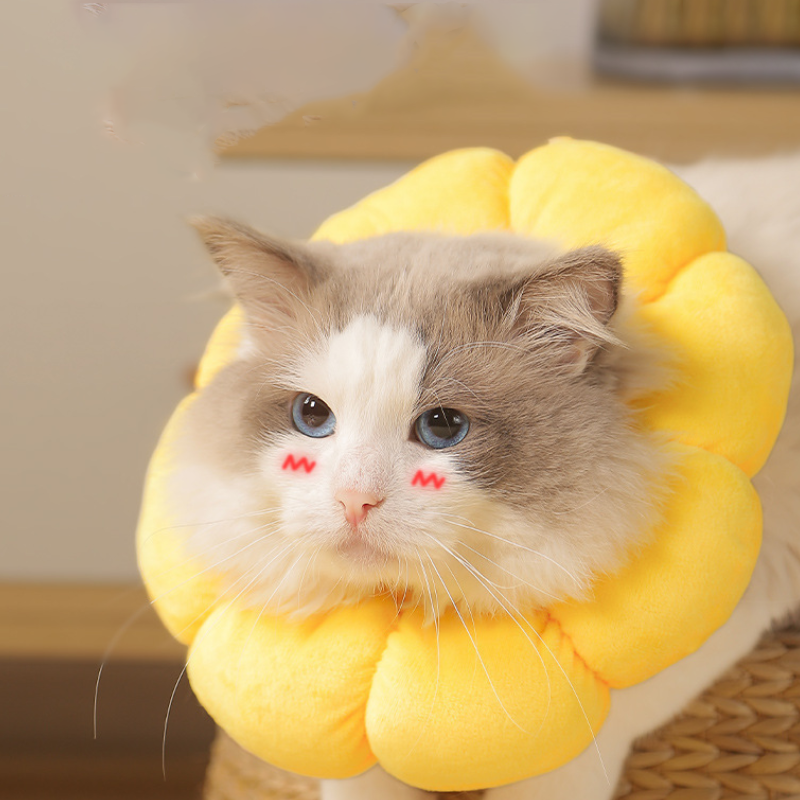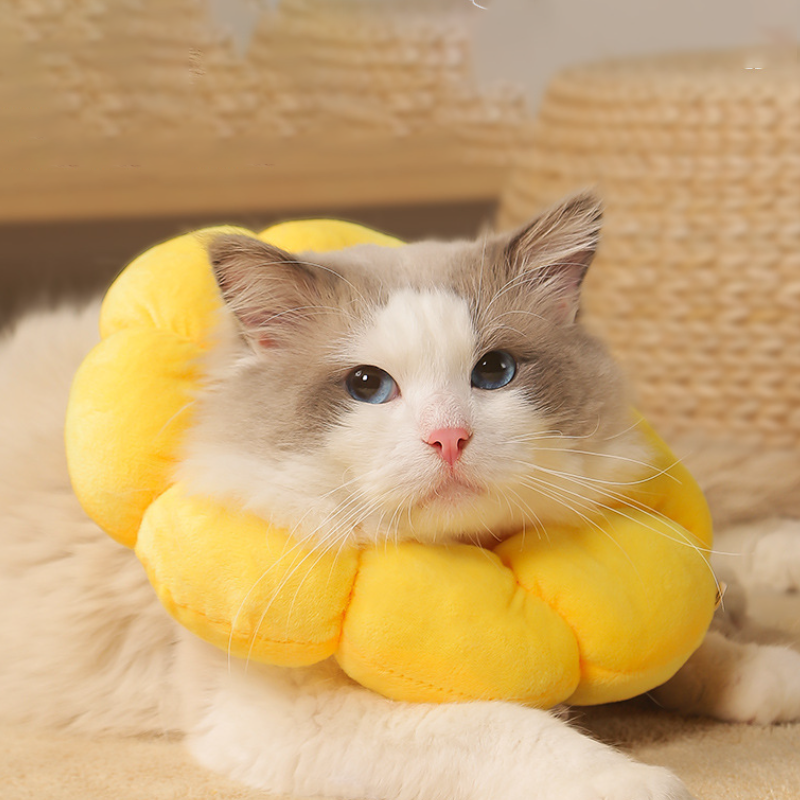 طوق ناعم للحيوانات الأليفة مضاد للعض طوق مريح لانتعاش القطط طوق لطيف على شكل عباد الشمس كلب القط مناسب للقطط الصغيرة الرائعة
