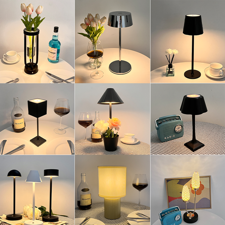Antique Gold Crystal Shade Battery Rechargeable Touch Screen Wireless Restaurant Light