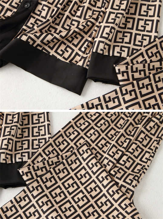 Autumn New Design Women's Lapel Thin Two Piece Long Pants Sets Fashion Printed Sleeveless Homewear