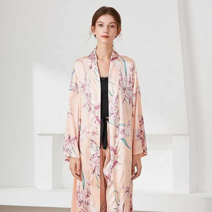 Autumn Sleepwear Women 3 Pieces Silk Sleepwear Pajamas Robe Set Floral Silk Pajamas Night Suit for Women