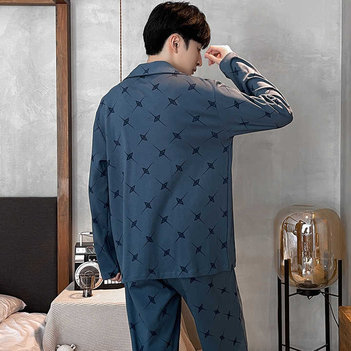 Spring and Autumn Men's Cotton Night Suit Long Sleeve Jacket Pants Men's Cotton Pajamas Lapel Casual Plus Size Sleepwear