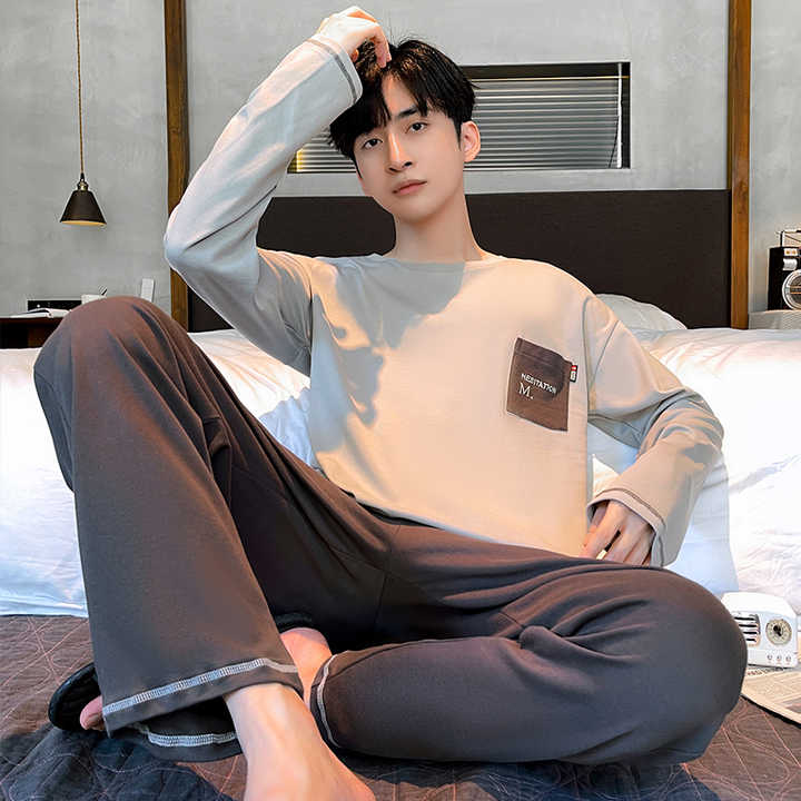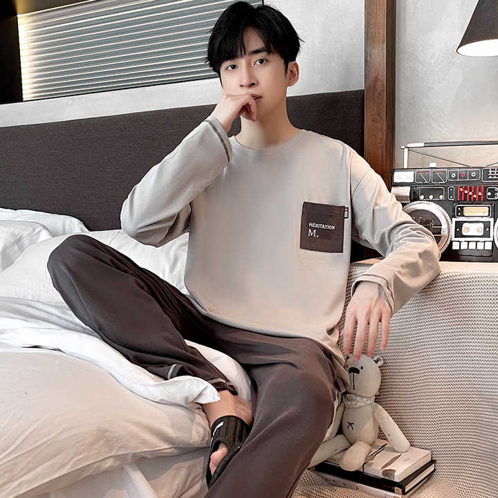 Winter Designs Nighty Round Neck Long Sleeve Men's Cotton Pajamas Male Autumn Night Suit Casual Plus Size Sleepwear