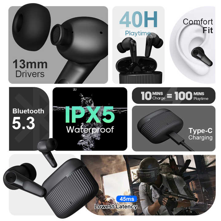 T15 BT Earphone Sports Over Ear Headphones with ENC Touch Control