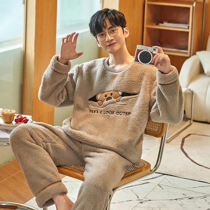 Family Supplier Christmas Home Wear Winter Warm Sleepwear Set Coral Pajamas Nightgown for Men