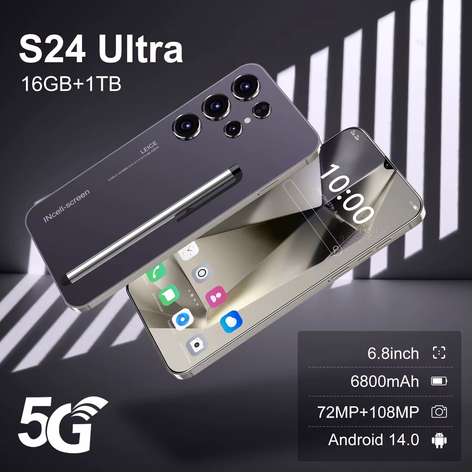 S24 Plus Smartphone 16GB+1 Decacore CPU Dual SIM HD Screen Custom Size Low Price Android Gaming Mobile Phone