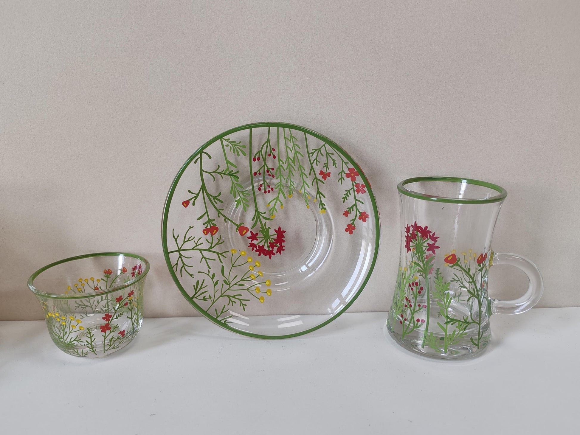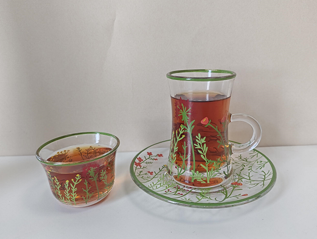 وصل حديثًا طقم عربي من 6 قطع طقم مع صحن زجاج مزدوج الجدار بنمط صائق جميل
