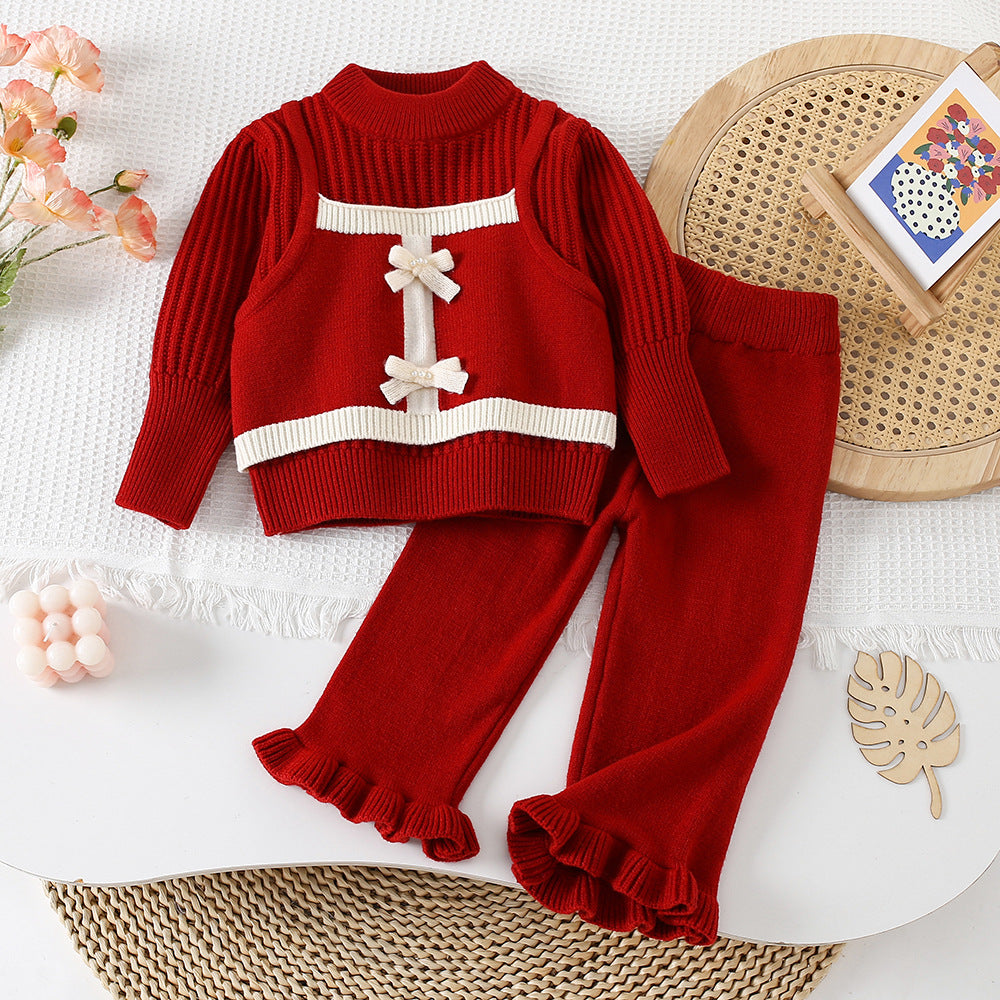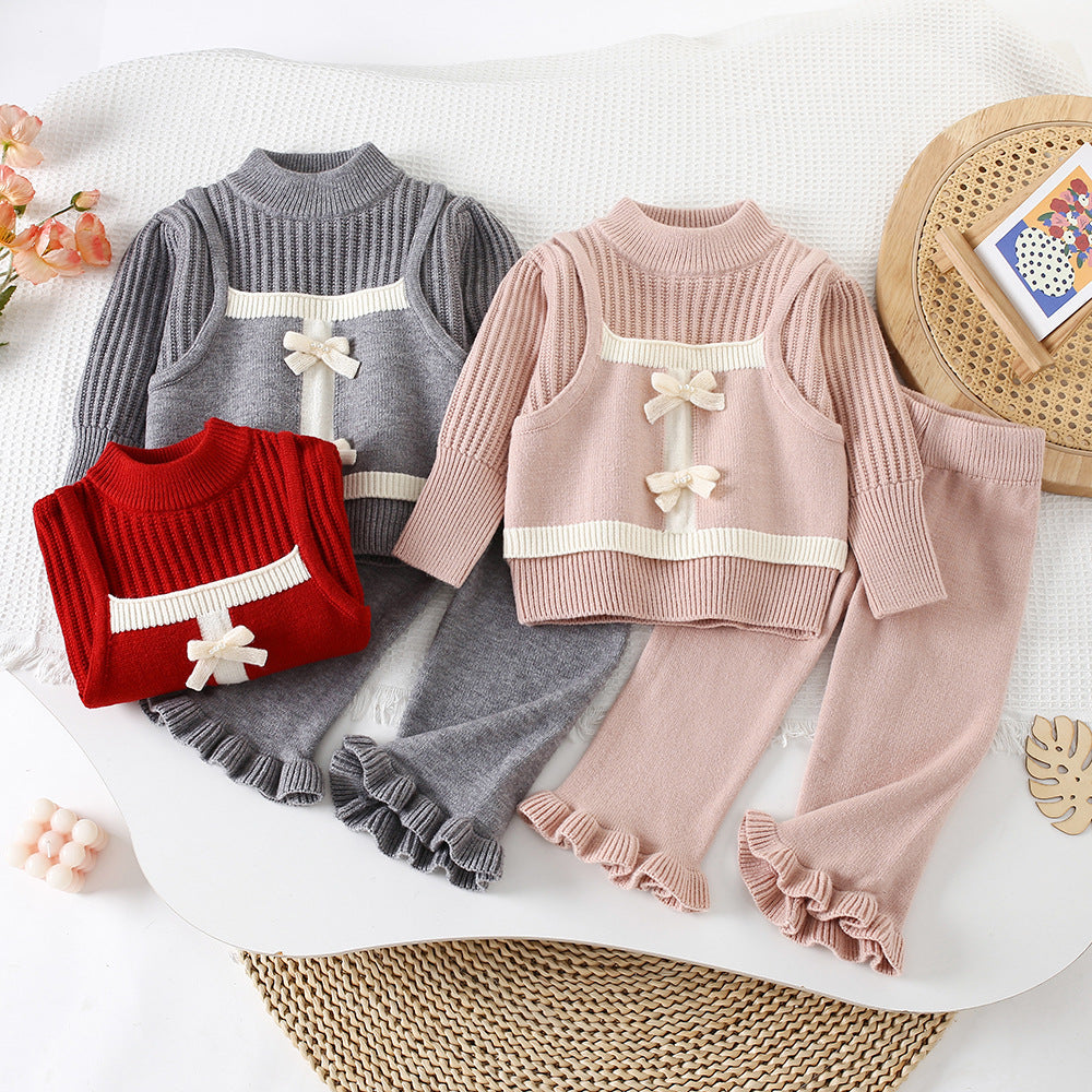 ملابس أطفال شتوية محبوكة دافئة للأطفال كارديجان ملابس للبنات الصغار طقم من قطعتين