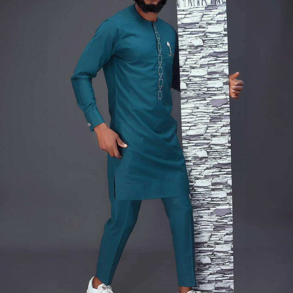 بدلات رجالية إفريقيّة صيفية تقليدية ملابس أنيقة Dashiki 2 قميص وبنطال مجموعة كاملة من ملابس المصممين