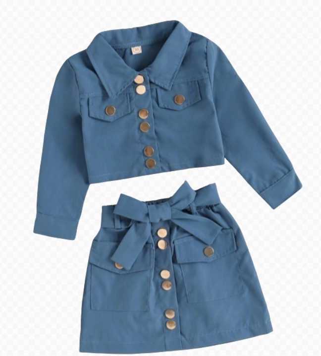 Elegant and graceful children's suit, children's clothing set for girls, blue coat + pleated skirt in the same color