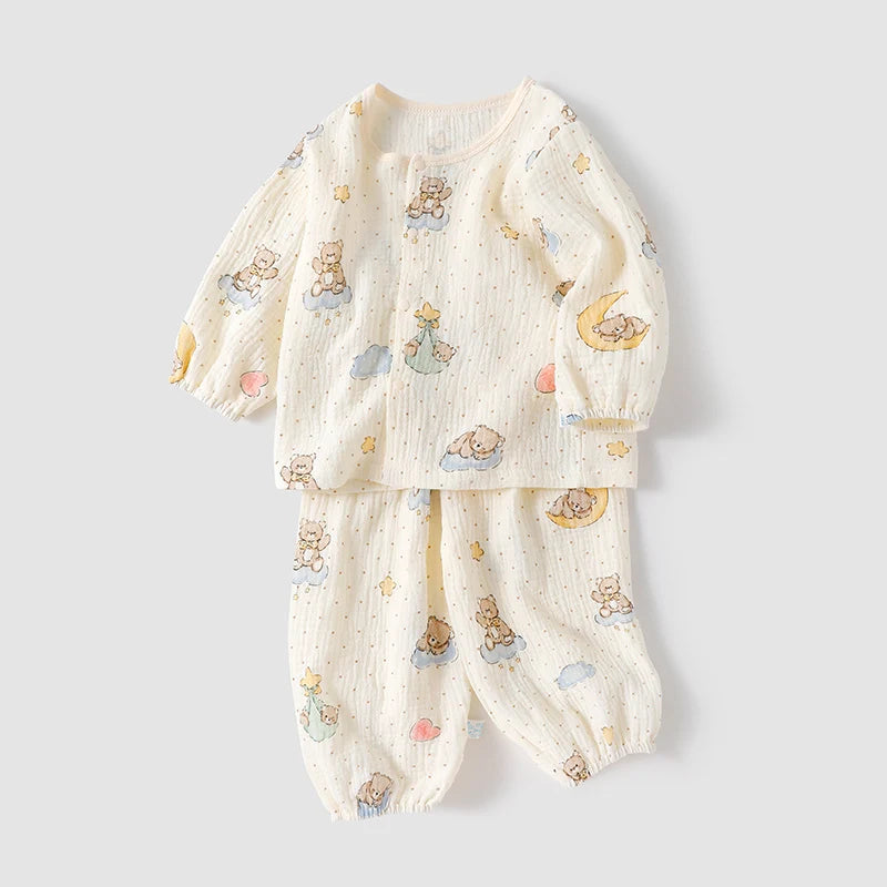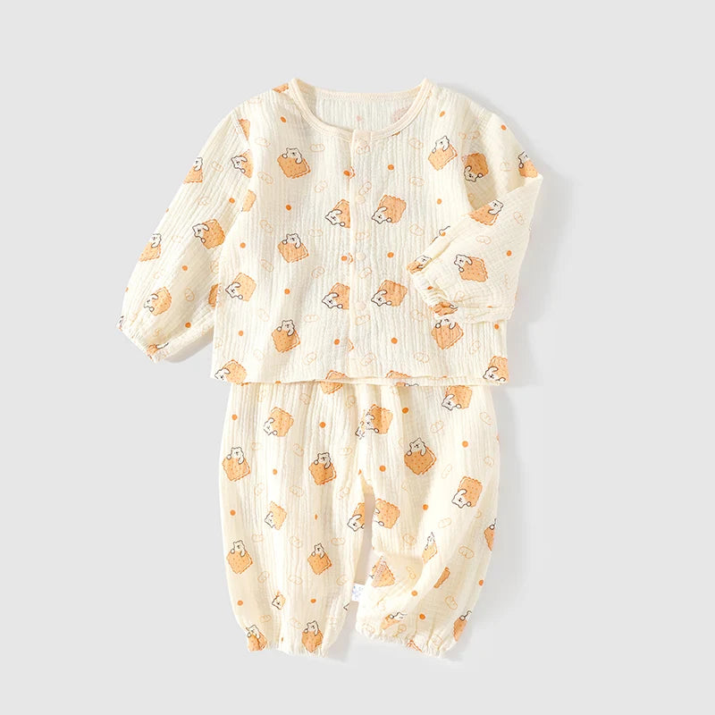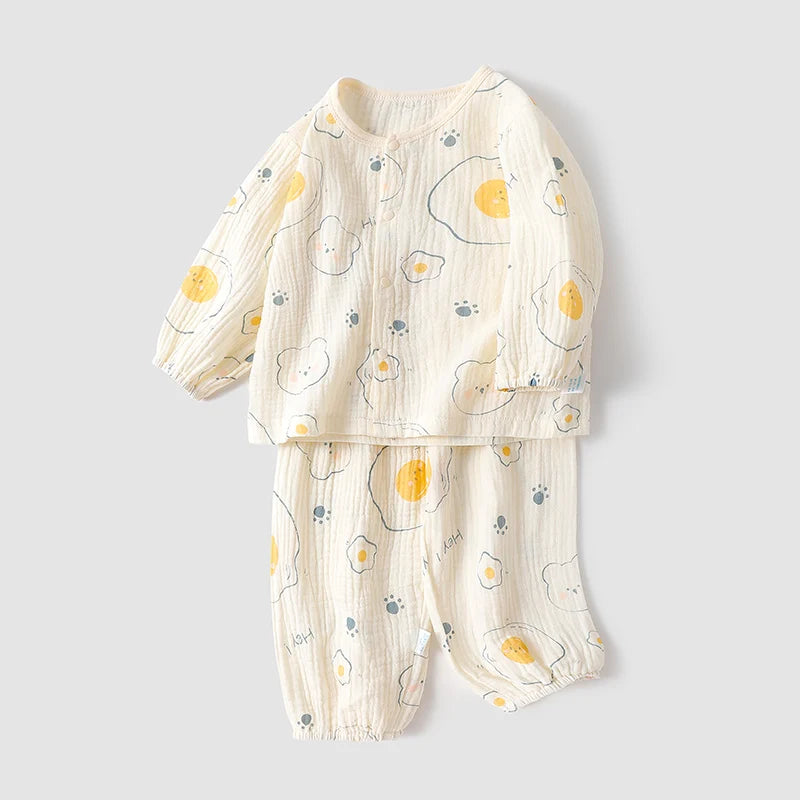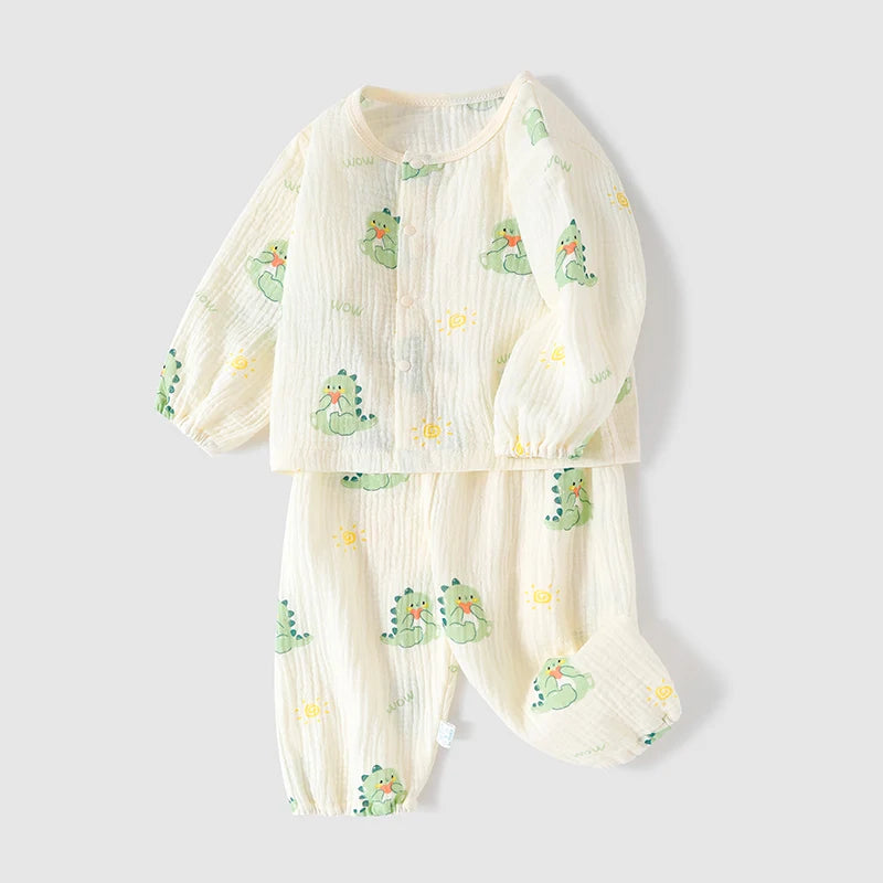 ملابس نوم أطفال قطنية رقيقة ، مجموعة ملابس منزلية بأكمام طويلة من ملابس الأطفال الشاش لفصل الربيع للأطفال