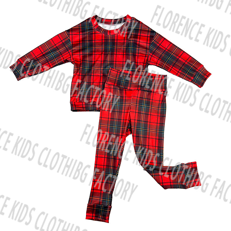 دي أوم حلوة مريحة تصميم كلاسيكي أحمر جينغوم مطبوعة بأكمام طويلة للطفل مجموعات ملابس الصبي