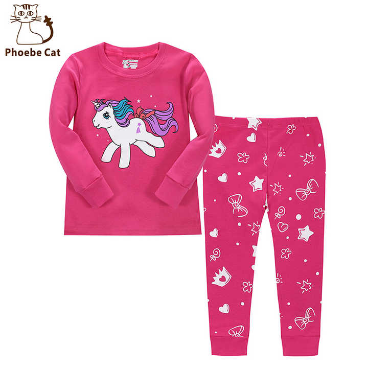 OEM Two Piece Designer Winter Unicorn Cartoon Cotton Children's Girls' Nightwear Sleep Wear Night Wear Sleepwear Kids Pajama Set