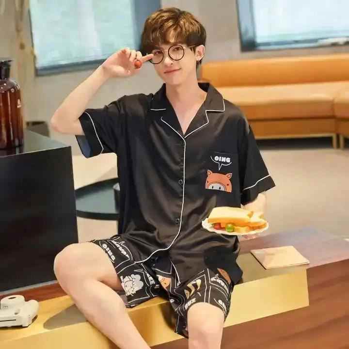 Men's Pajama Set Short Sleeve Soft Button Pajamas Men's Pajama Set Casual Monogram