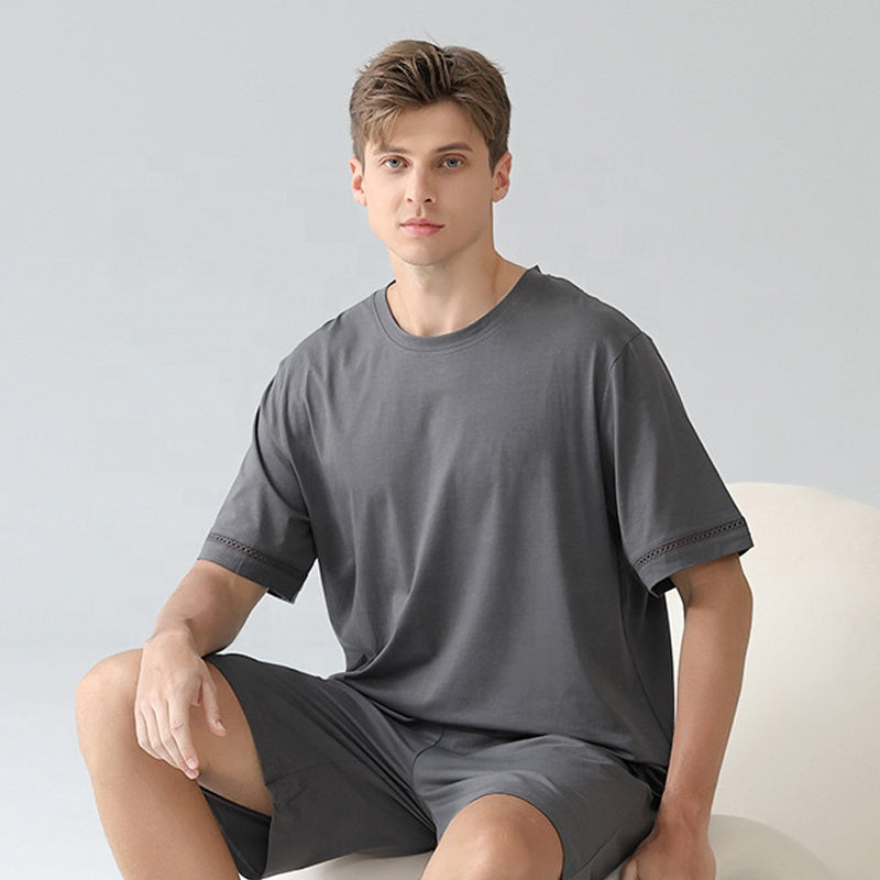 ملابس نوم صيفية للرجال، طقم شورت بأكمام قصيرة من مودال كولنس، بيجامات بمقاسات كبيرة، ملابس للاسترخاء