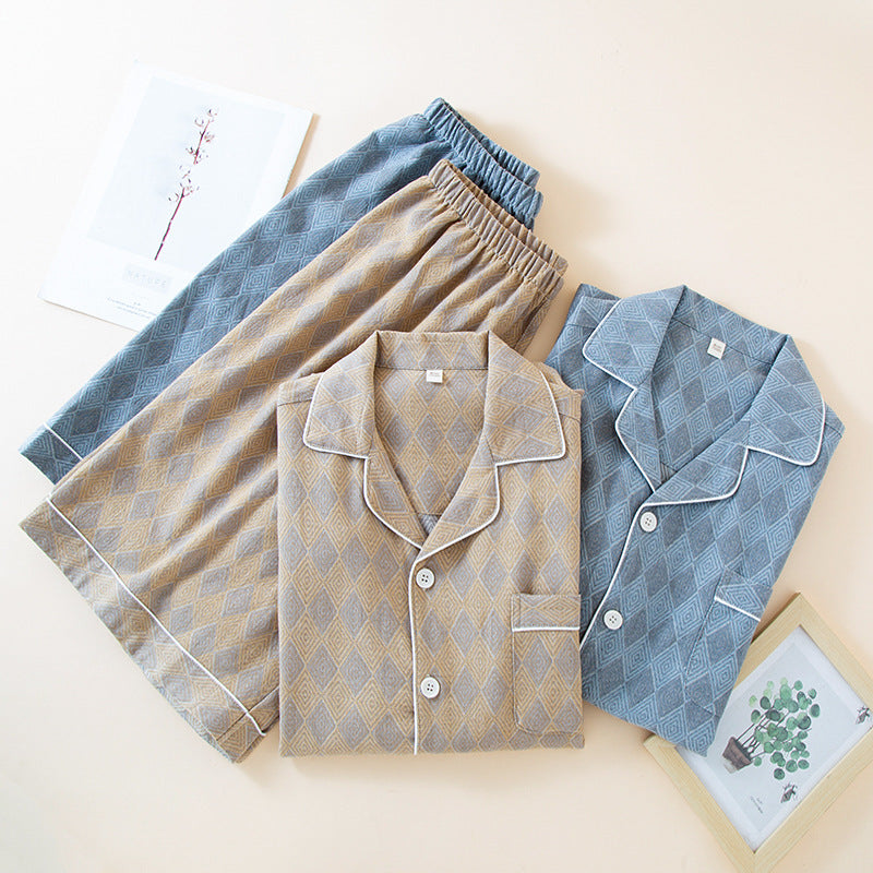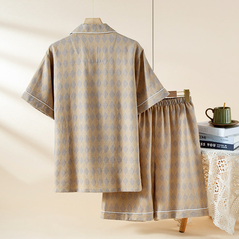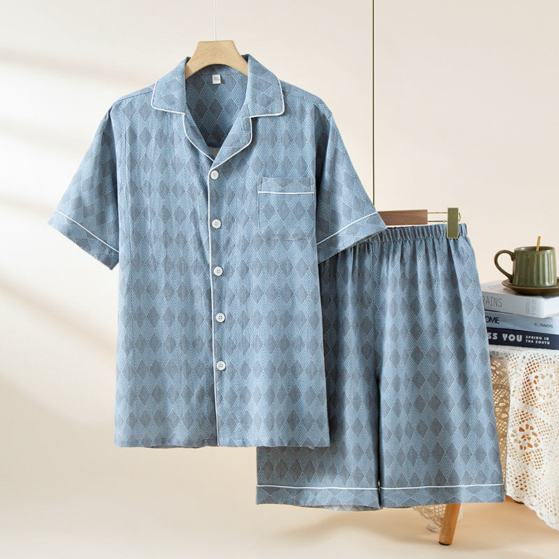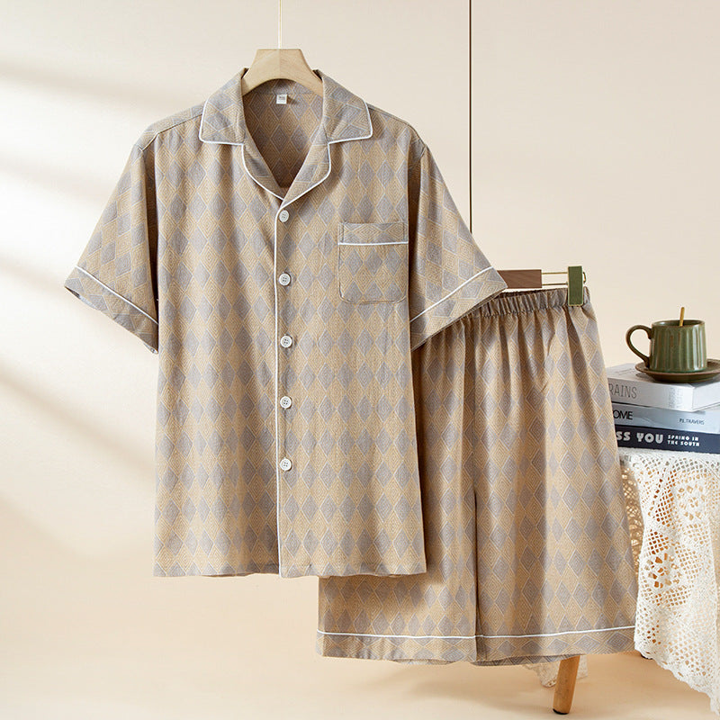 طقم بيجامات رجالي ناعم مخصص بأكمام قصيرة وقميص بأزرار وشورت مكون من قطعتين من القطن 100% من مُصنِّع ملابس النوم