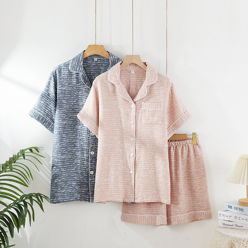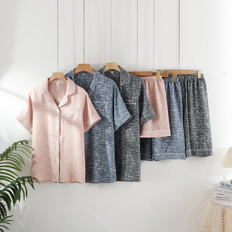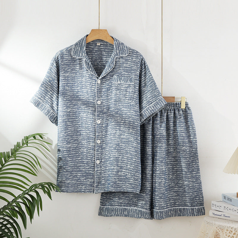 مجموعة بيجامات رجالية مخططة من شركة تصنيع البيجامات مصنوعة من القطن بنسبة 100% قابلة للتهوية وشاش صيفي وبنطلون بأكمام قصيرة وملابس منزلية